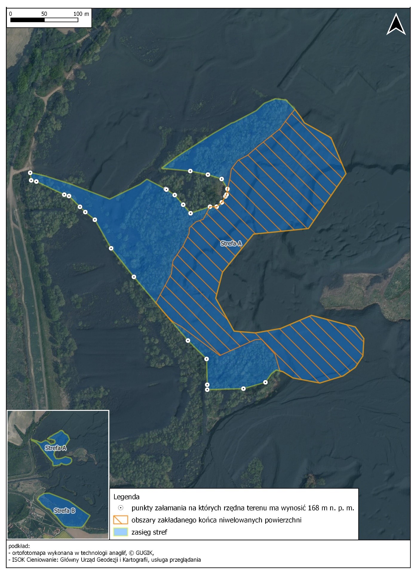 Przedmiotowe prace polegały na wycince i karczowaniu drzew i krzewów w strefie brzegowej zbiornika oraz niwelacji i wyprofilowaniu terenu w sposób zapewniający powstanie dogodnych żerowisk dla ptaków. Usunięcie drzew i krzewów oraz ukształtowanie i wyprofilowanie linii i strefy brzegowej przyczynią się do zwiększenia bezpieczeństwa żerujących wzdłuż linii brzegowej ptaków brodzących poprzez poprawę widoczności okolicy i zniwelowanie presji ze strony drapieżników. Nie będą one miały możliwości dokonywania ataków z drzew, a żerujące ptaki będą mogły zauważyć ewentualne zagrożenie i podjąć ucieczkę, również przed zbliżającym się człowiekiem.