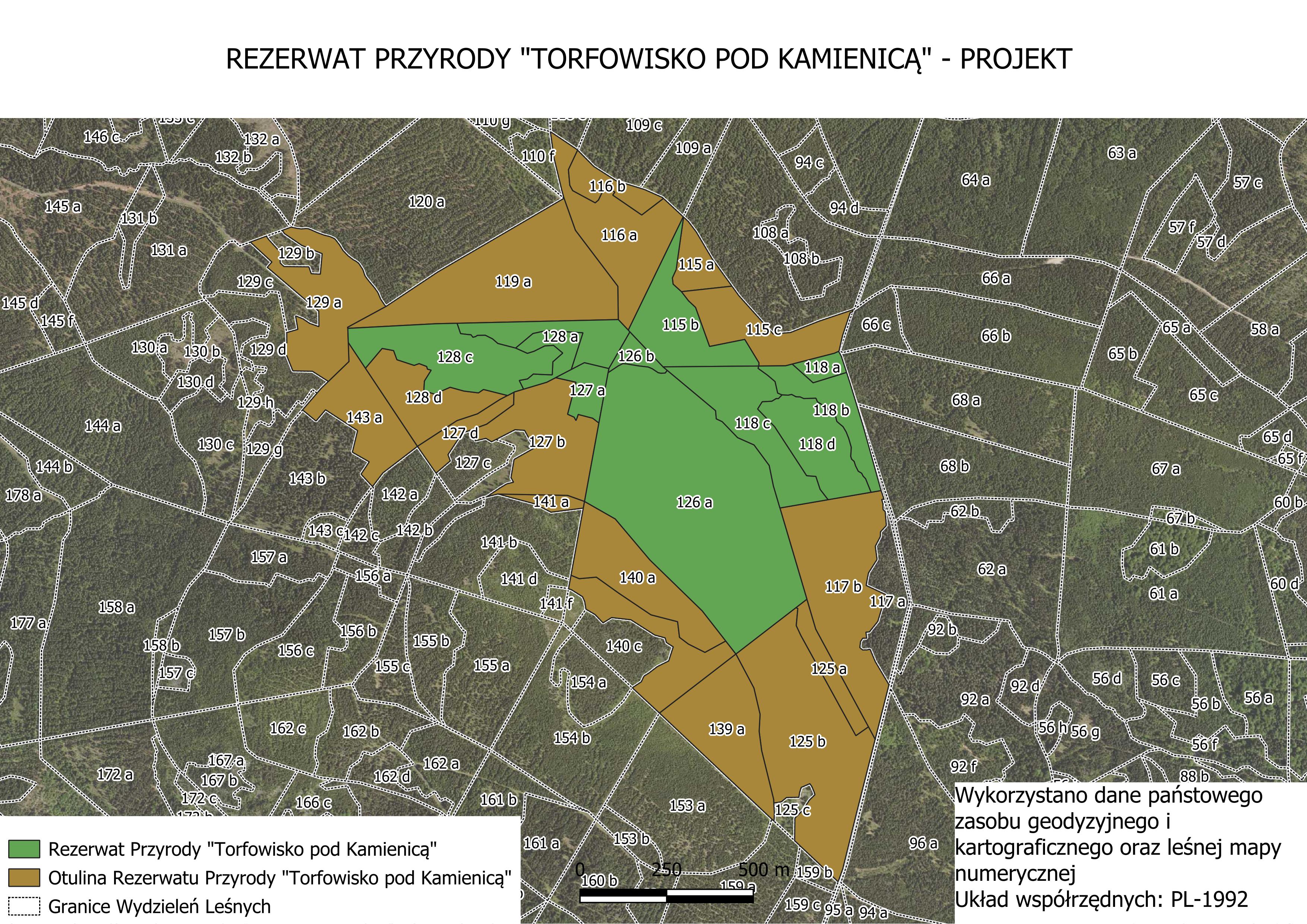- warstwy wektorowe planowanego rezerwatu