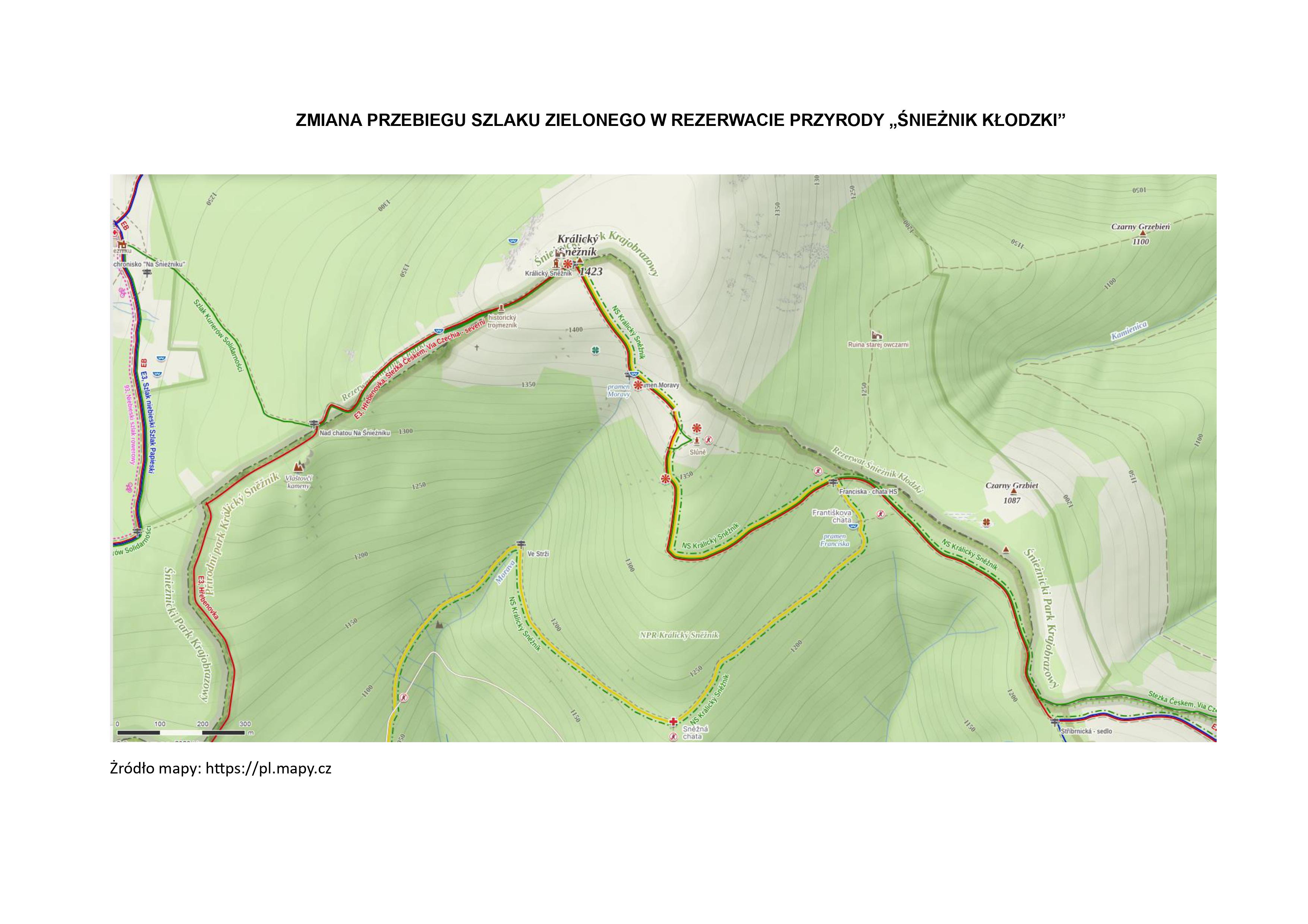 ZMIANA PRZEBIEGU SZLAKU ZIELONEGO W REZERWACIE PRZYRODY „ŚNIEŻNIK KŁODZKI”
