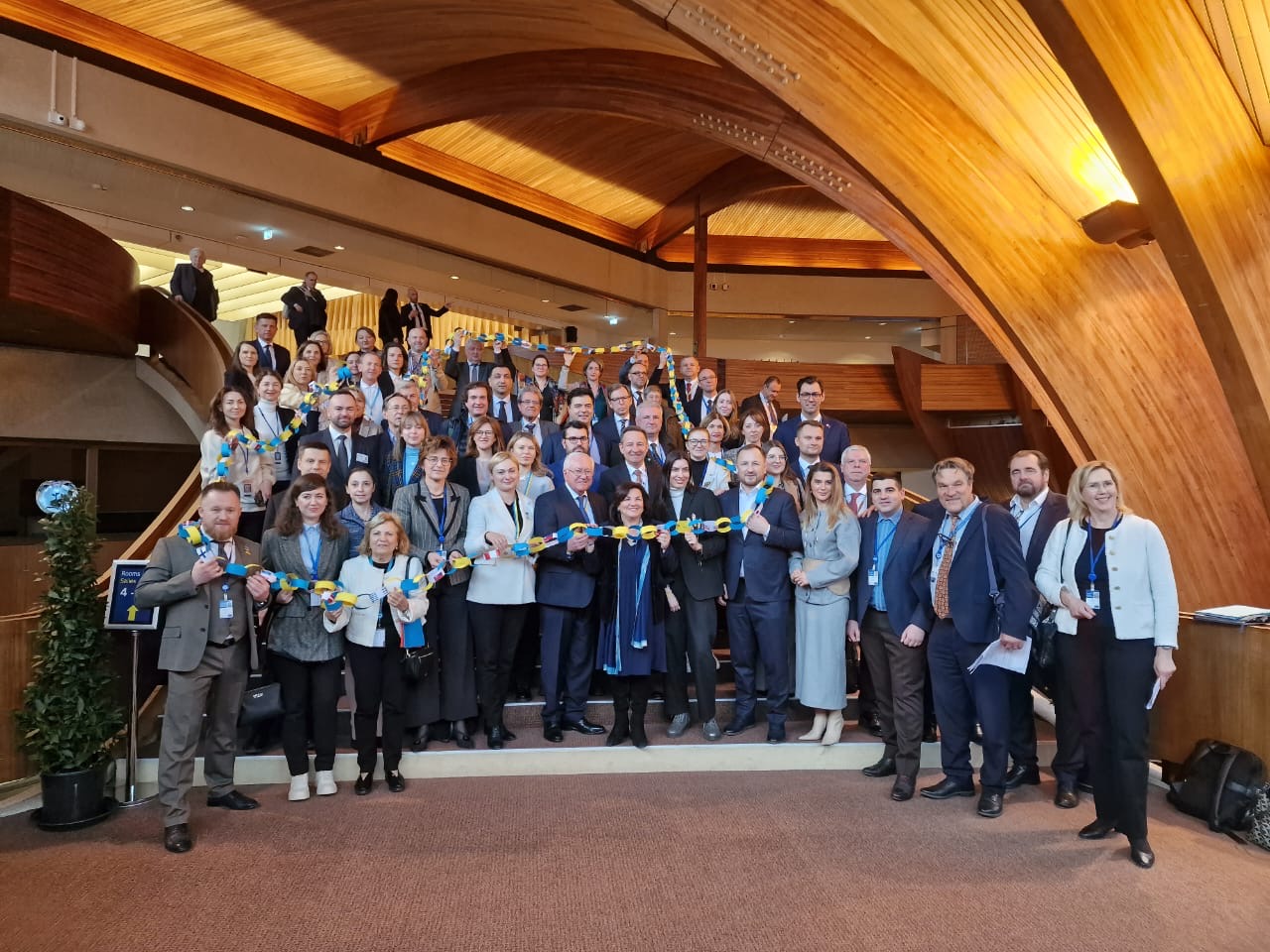Zgromadzenie Parlamentarne podjęło także temat niepokojącej sytuacji za wschodnią granicą Polski. Trwająca od ponad dwóch lat wojna w Ukrainie pozostawia za sobą wiele ofiar, w tym wśród dzieci. Małżonka prezydenta Ukrainy Olena Zelenska zwróciła się do parlamentów narodowych o przyłączenie się do działań mających na celu zmuszenie Rosji do przestrzegania konwencji genewskich i natychmiastowego dostarczenia wyczerpujących list zawierających nazwiska i miejsca pobytu wszystkich ukraińskich dzieci, które zostały nielegalnie deportowane. Polscy delegaci wraz z przedstawicielami innych delegacji zaprezentowali po raz pierwszy podczas sesji parlamentarnej polską inicjatywę „Chain of solidarity with Ukraine”.