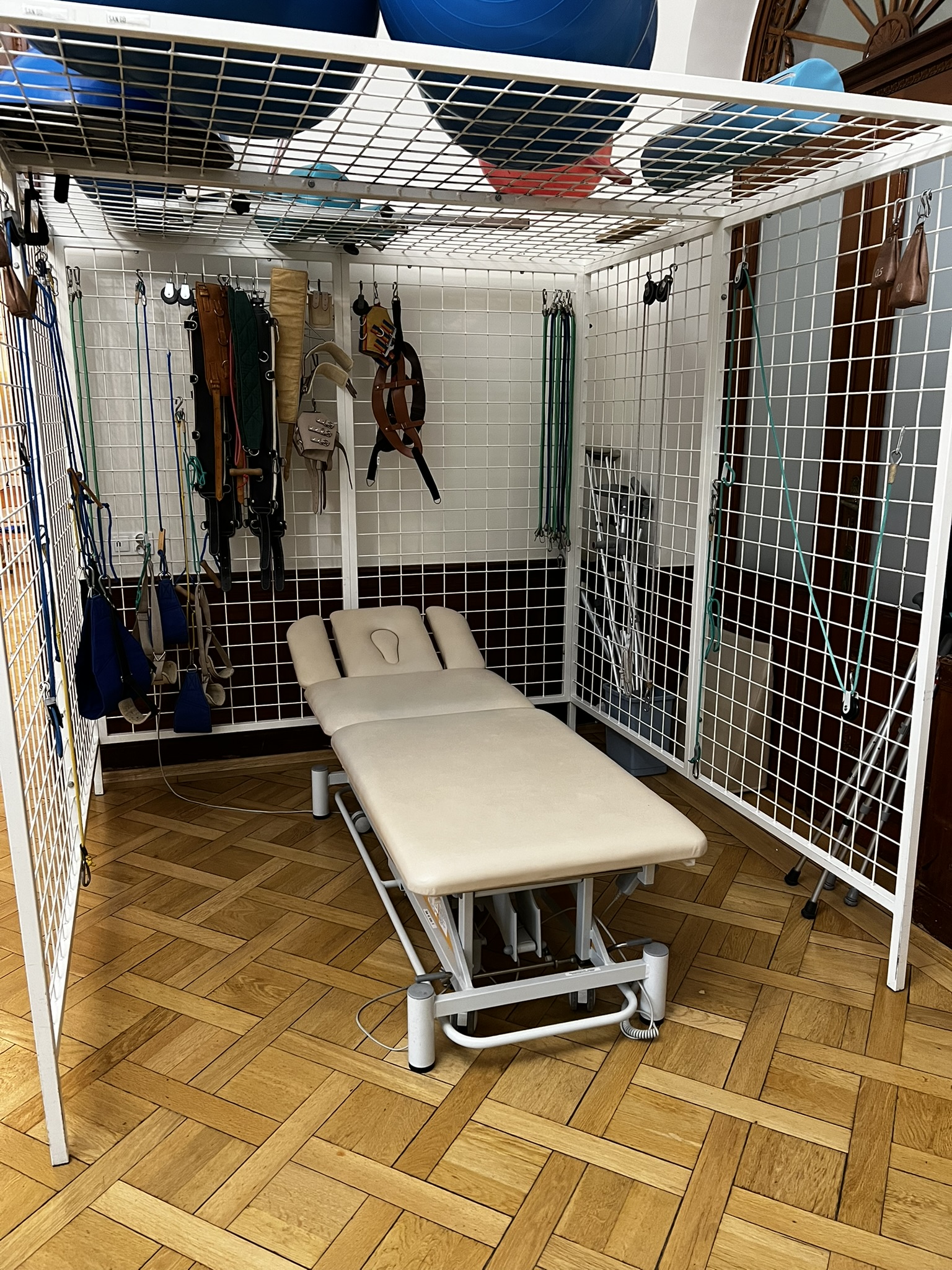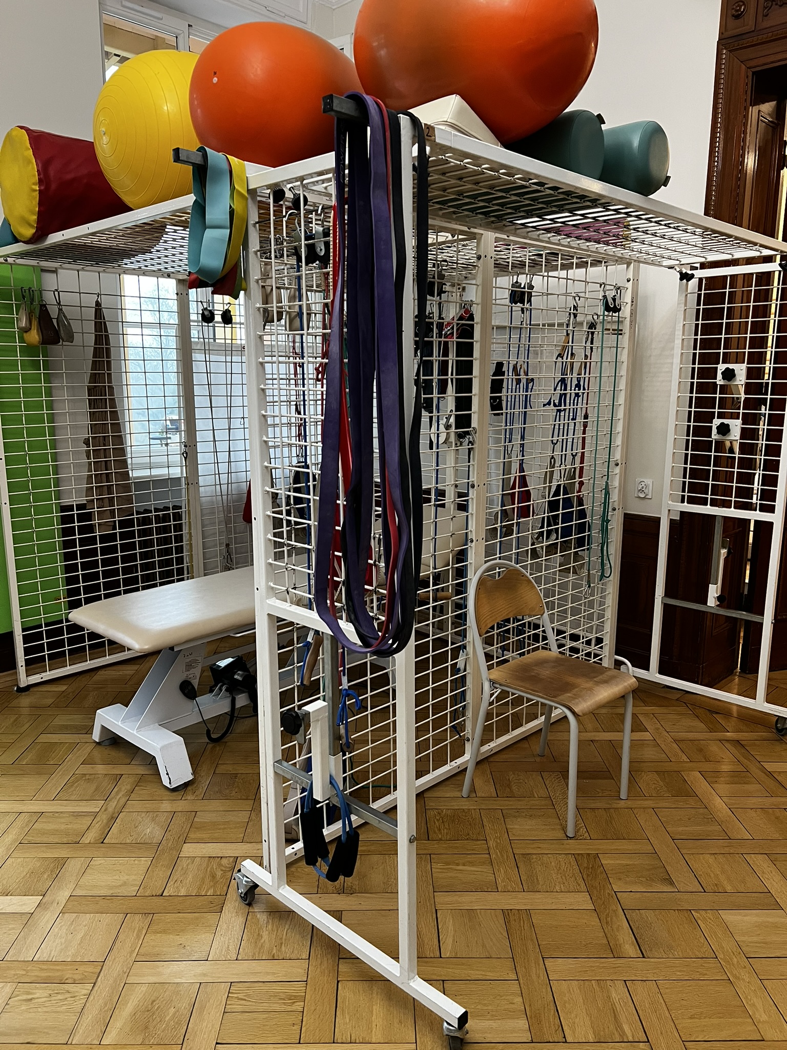 UGUL (Uniwersalny Gabinet Usprawniania Leczniczego), to urządzenie używane w fizjoterapii i rehabilitacji. Jest to rodzaj klatki wyposażonej w system linek, bloczków i podwieszeń, które pozwalają na wykonywanie różnych ćwiczeń z odciążeniem, gdzie ciężar ciała lub kończyny jest częściowo podtrzymywany, co zmniejsza ryzyko kontuzji i pozwala na bezpieczne wzmacnianie mięśni oraz poprawę ruchomości stawów. Rehabilitacja jest bardziej efektywna i dostosowana do indywidualnych potrzeb pacjenta.
