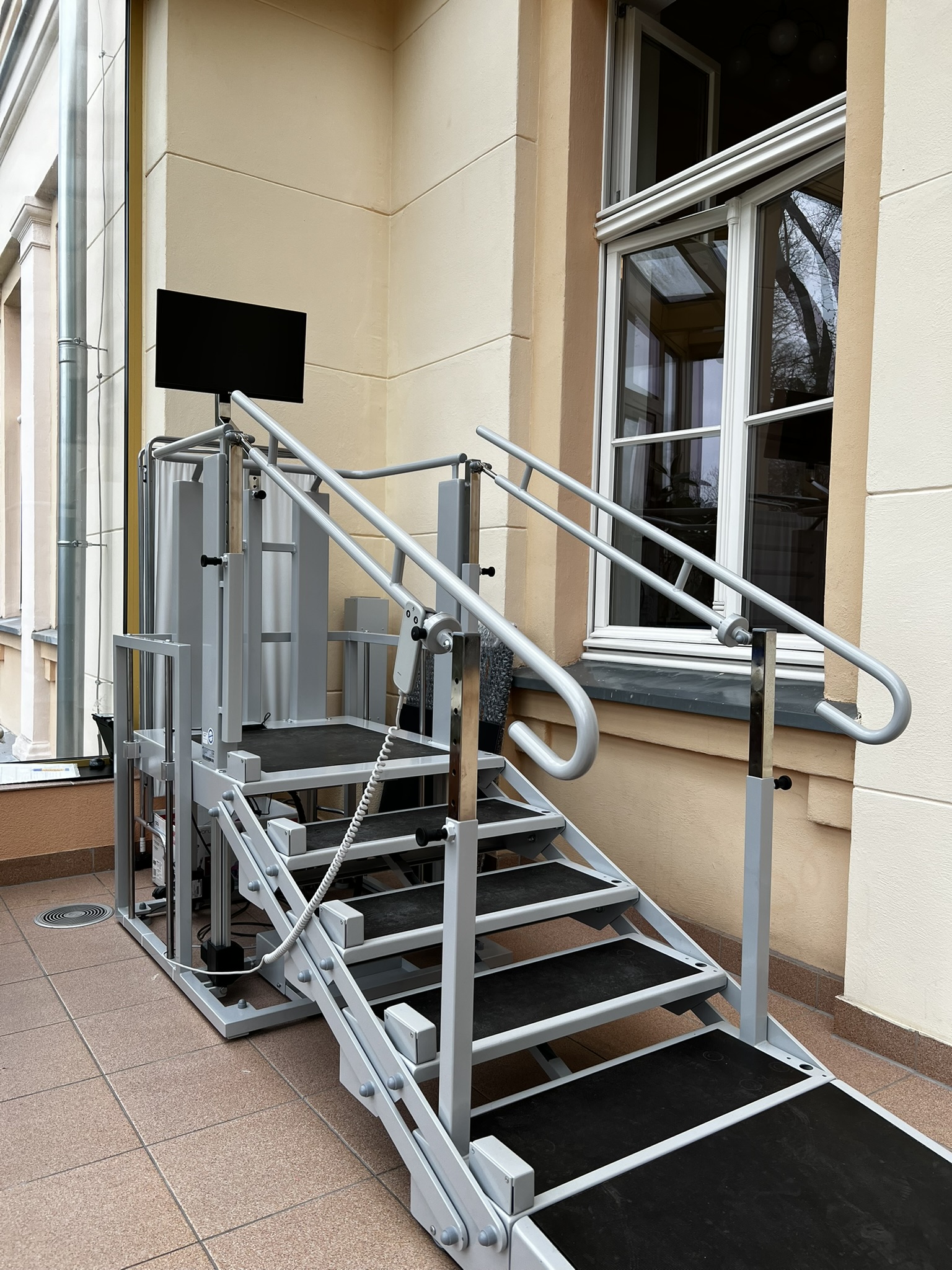 Urządzenie jest wyposażone w czujniki pozwalające na dostosowanie wysokości stopni oraz na śledzenie ruchów pacjenta wraz z analizą postępów i posturografii. Schody dodatkowo można doposażyć w specjalistyczną matę monitorującą nacisk stóp oraz obciążenie poszczególnych kończyn podczas zabiegu. Dzięki temu możliwe jest bieżące dostosowywanie programu ćwiczeń i monitorowanie, jak poprawia się koordynacja ruchowa i reedukacja chodu.