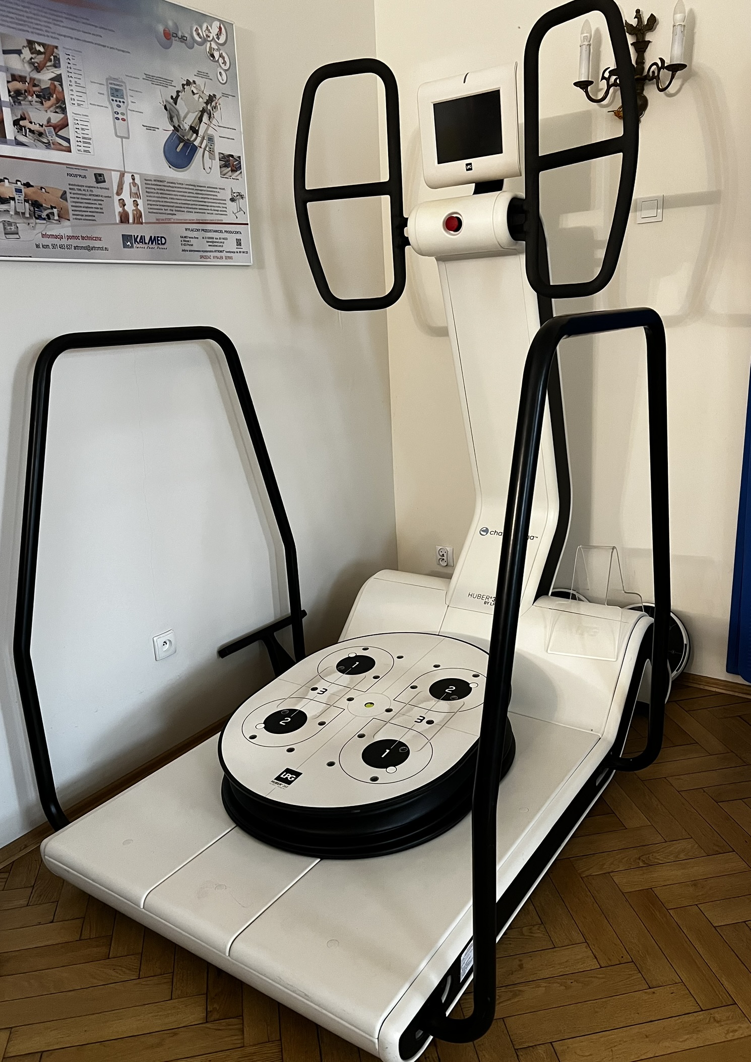 To urządzenie medyczne umożliwiające diagnostykę i Trening Neuro-fizjologiczny. Posiada czujniki siły zintegrowane z uchwytami i platformą, zapewniając angażujący trening rehabilitacyjny