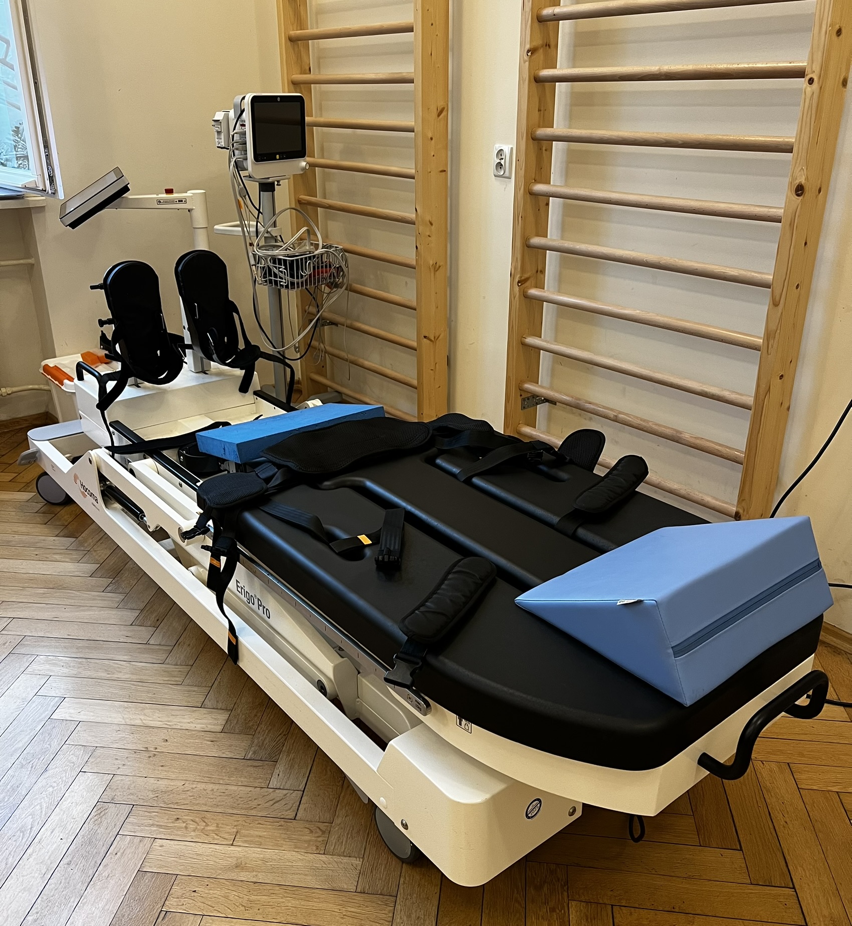 Stół pionizacyjny z funkcją kroczenia do rehabilitacji pacjentów z zaburzeniami neurologicznymi i ortopedycznymi. Dzięki funkcji stopniowego pionizowania i zautomatyzowanym ćwiczeniom ruchowym wspiera wczesną mobilizację pacjentów, poprawia krążenie oraz zmniejsza ryzyko powikłań wynikających z długotrwałego unieruchomienia. Stół umożliwia dostosowanie terapii do indywidualnych potrzeb, zapewniając skuteczne i bezpieczne wsparcie w procesie powrotu do pełnej sprawności.