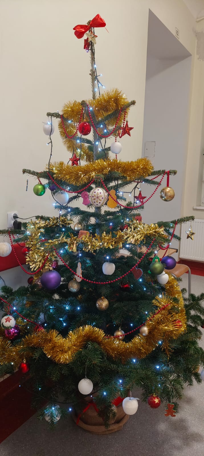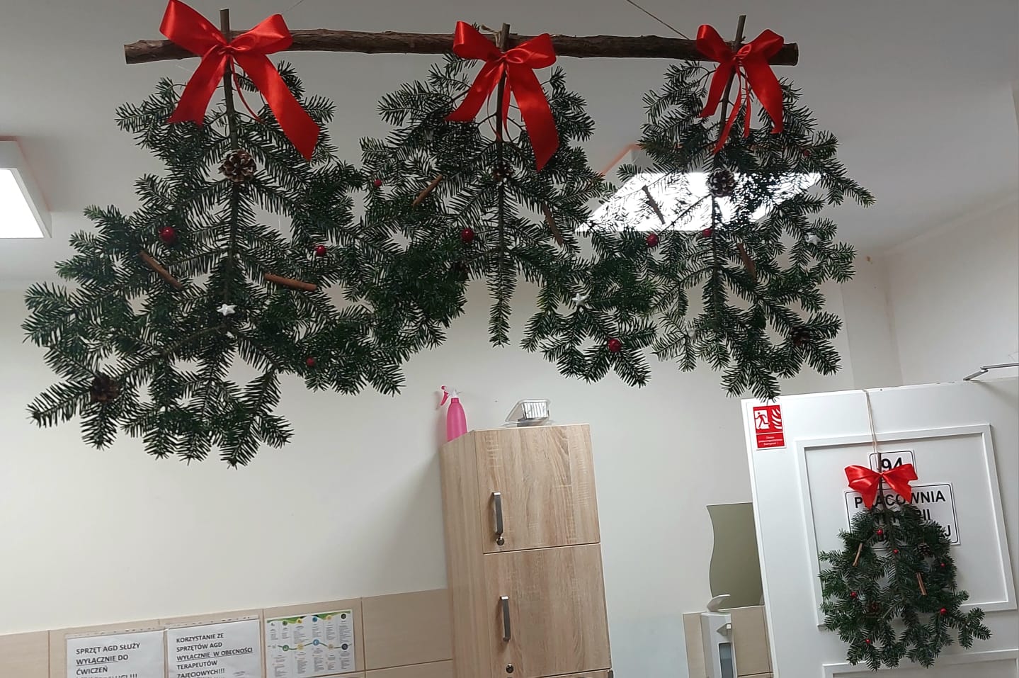 Pacjenci w ramach terapii zajęciowej przygotowali również ozdoby świąteczne, a dzieci przystroiły kolorową choinkę. Bożonarodzeniowy klimat wypełnia każde miejsce urokiem i ciepłem.