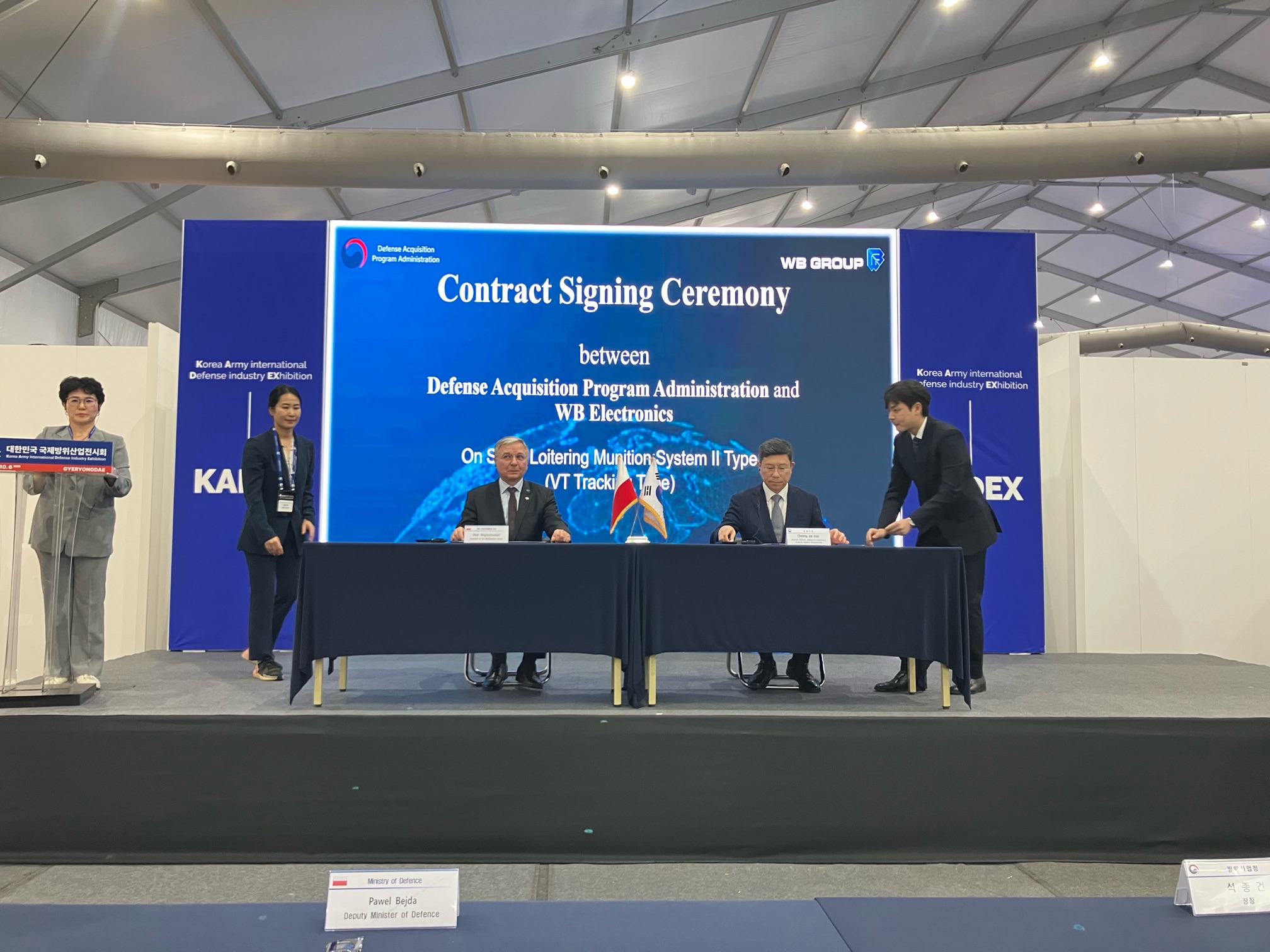 Wiceminister Paweł Bejda wziął również udział w targach przemysłu obronnego KADEX. Podczas targów P. Bejda uczestniczył w ceremonii podpisania dwóch ważnych umów przez polską Grupę WB. Pierwsza zawarta z Agencją Planowania Zakupów Obronnych (DAPA) dotyczyła pozyskania przez Siły Zbrojne Republiki Korei systemu amunicji krążącej Warmate 3. Druga umowa, podpisana z firmą Hanwha Aerospace, odnosiła się do produkcji w Polsce pocisków rakietowych przeznaczonych dla wyrzutni Homar-K.
