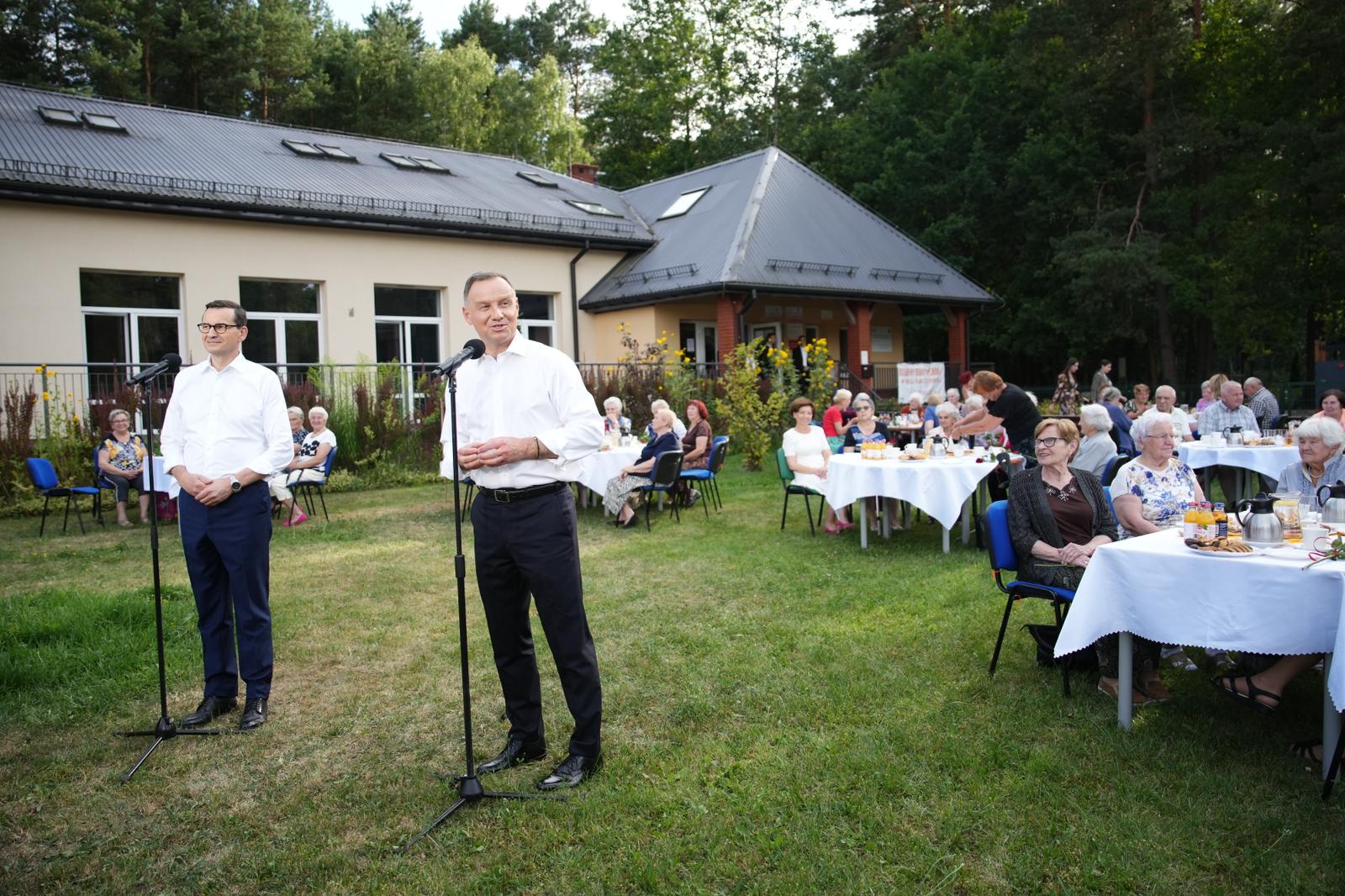 Z tej okazji prezydent Andrzej Duda, premier Mateusz Morawiecki oraz minister rodziny i polityki społecznej Marlena Maląg odwiedzili Dzienny Dom Senior+ w Woli Karczewskiej. Spotkanie z uczestnikami zajęć w placówce było pełne ciepłych rozmów i życzliwości.