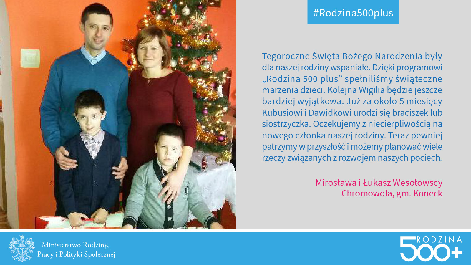 - Do czasu wejścia w życie programu Rodzina 500 plus nasza rodzina żyła na skromnym, ale zabezpieczającym podstawowe potrzeby życiowe poziomie. Najmłodsze dziecko jest niepełnosprawne w związku z czym, pracującym członkiem rodziny jest tylko jedna osoba. Obecnie sytuacja naszej rodziny zdecydowanie się poprawiła. Przykładem mogą być minione Święta Bożego Narodzenia. Możemy bardziej kreatywnie planować przyszłość, czując się bezpiecznie w teraźniejszości - twierdzi rodzina Dębskich z Pabianic.