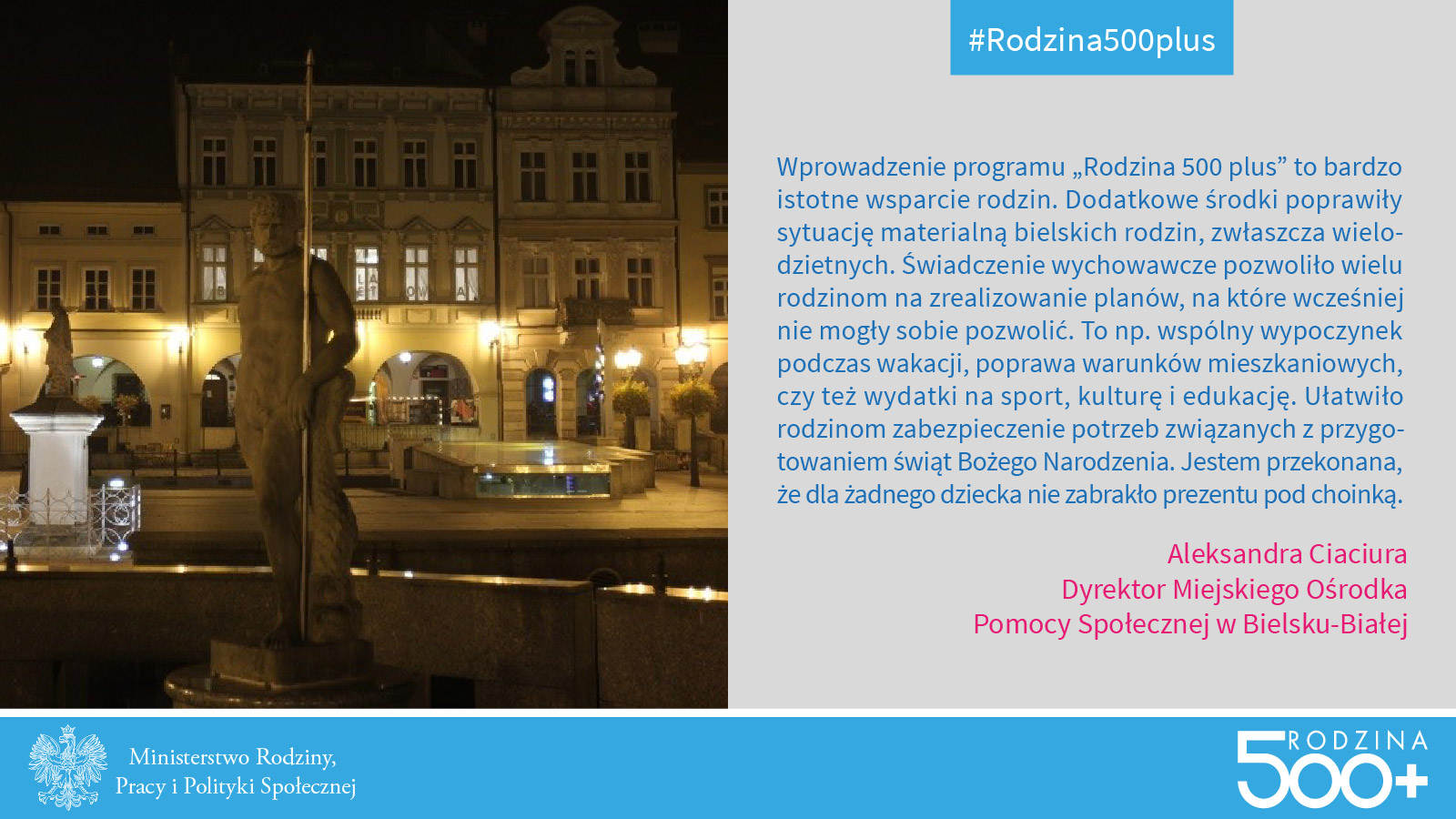 - Program "Rodzina 500 plus" to ogromna pomoc dla naszych rodzin, szczególnie wielodzietnych. W Pabianicach korzysta z niego ok. 5100 dzieci, co stanowi ponad połowę dzieci w mieście. Z informacji przekazywanych przez pracowników socjalnych i asystentów rodzin wynika, że poziom życia w rodzinach znacząco się poprawił, co szczególnie zauważa się w okresie świątecznym. Obserwujemy spadek liczby rodzin korzystających z pomocy społecznej w naszym mieście - ocenia Teresa Bożena Bednarska, Dyrektor Miejskiego Centrum Pomocy Społecznej w Pabianicach.