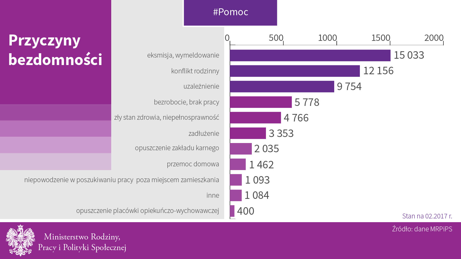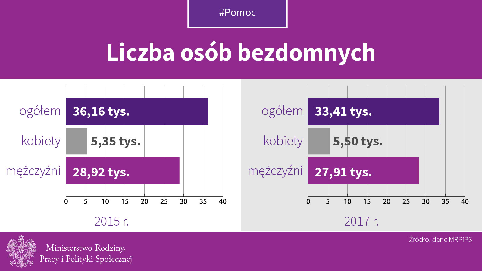 W nocy z 8 na 9 lutego 2017 r. przeprowadzono po raz czwarty Ogólnopolskie badanie liczby osób bezdomnych. Koordynatorem badania jest Ministerstwo Rodziny, Pracy i Polityki Społecznej. W porównaniu z danymi z roku 2015, liczba osób bezdomnych zmalała o 2 753 osoby.
