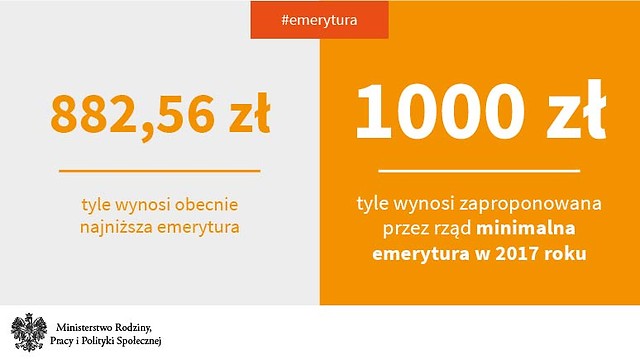 Rząd proponuje, by wszystkie emerytury i renty w 2017 r były wyższe. Najniższa emerytura, wynosząca obecnie 882,56 zł zostanie podniesiona do 1000 zł.