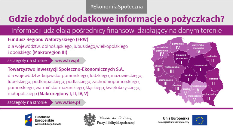 Pożyczki udzielane będą przez Pośredników finansowych - Fundusz Regionu Wałbrzyskiego (FRW) i Towarzystwo Inwestycji Społeczno-Ekonomicznych S.A. (TISE) w ramach projektu realizowanego w Programie Operacyjnym Wiedza Edukacja Rozwój 2014-2020.