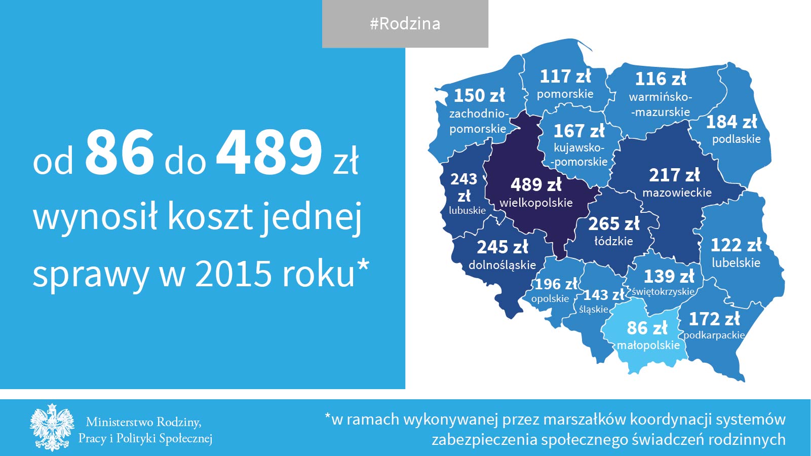 Mając na uwadze, że w gminie koszt prowadzenia jednej sprawy waha się od 110 zł do 118 zł., ministerstwo proponuje, że Marszałkowie otrzymają ok 140 zł za sprawę prowadzoną w ramach koordynacji systemów zabezpieczenia społecznego. Wyższe koszty wynikają z większego skomplikowania sprawy, czyli m.in. dodatkowych czynności oraz wyższych kosztów korespondencji, w szczególności korespondencji zagranicznej.