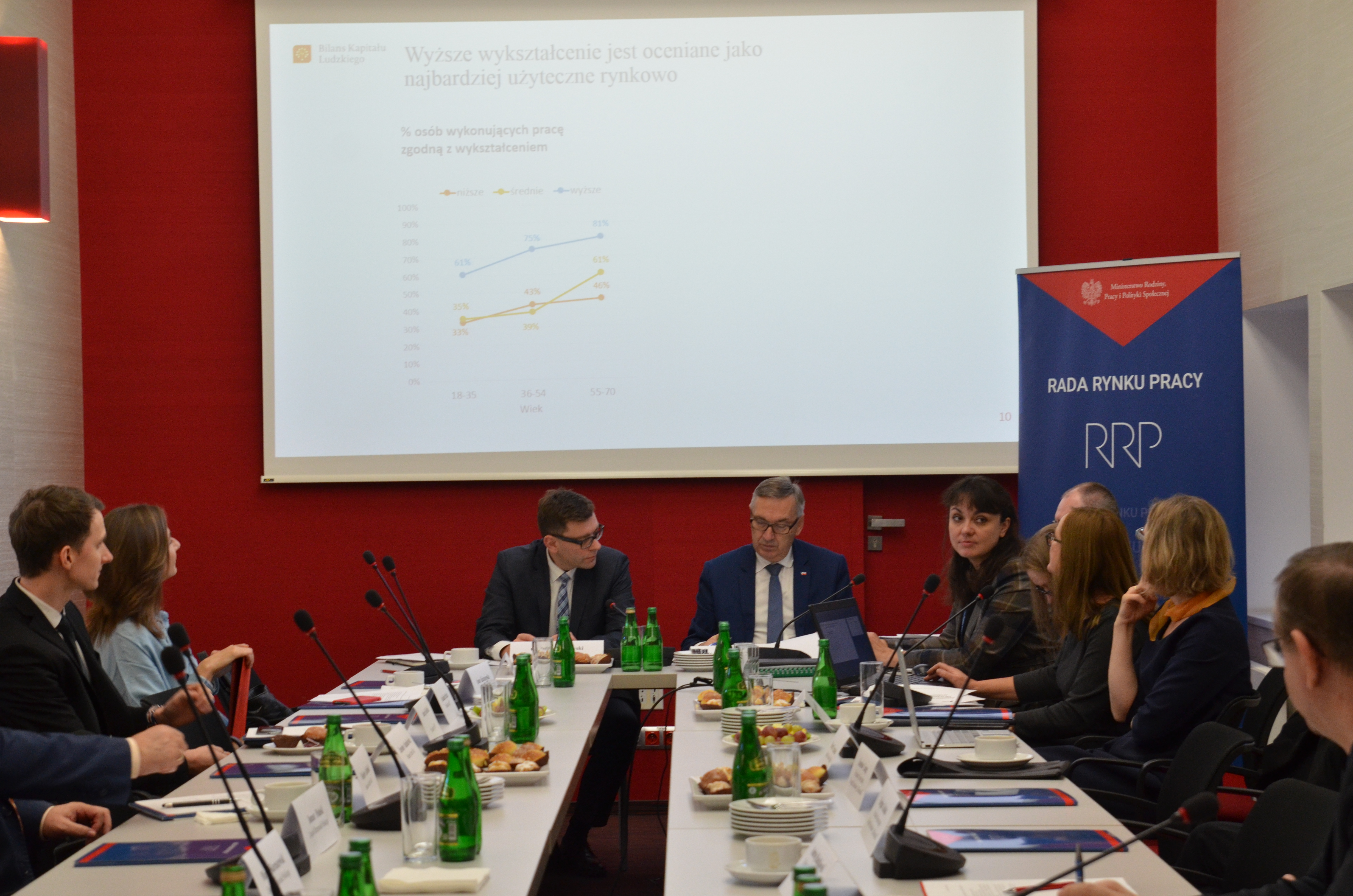 Podczas posiedzenia Rady Rynku Pracy prezentacje przedstawili przedstawiciele resortu pracy oraz zaproszeni goście - dr Barbara Worek z Uniwersytetu Jagiellońskiego oraz Maja Dobrzyńska z Polskiej Agencji Rozwoju Przedsiębiorczości. Po każdym punkcie porządku obrad miała miejsce krótka dyskusja pomiędzy członkami RRP, a przedstawicielami Ministerstwa Rodziny, Pracy i Polityki Społecznej.
