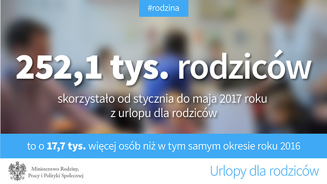 Rodzice częściej korzystają z przysługujących im urlopów. W okresie styczeń-maj 2017 roku z urlopów rodzicielskich skorzystało o 17,7 tys. osób więcej niż w tych samych miesiącach rok temu (252,1 tys. w stosunku do 234,4 tys. osób).