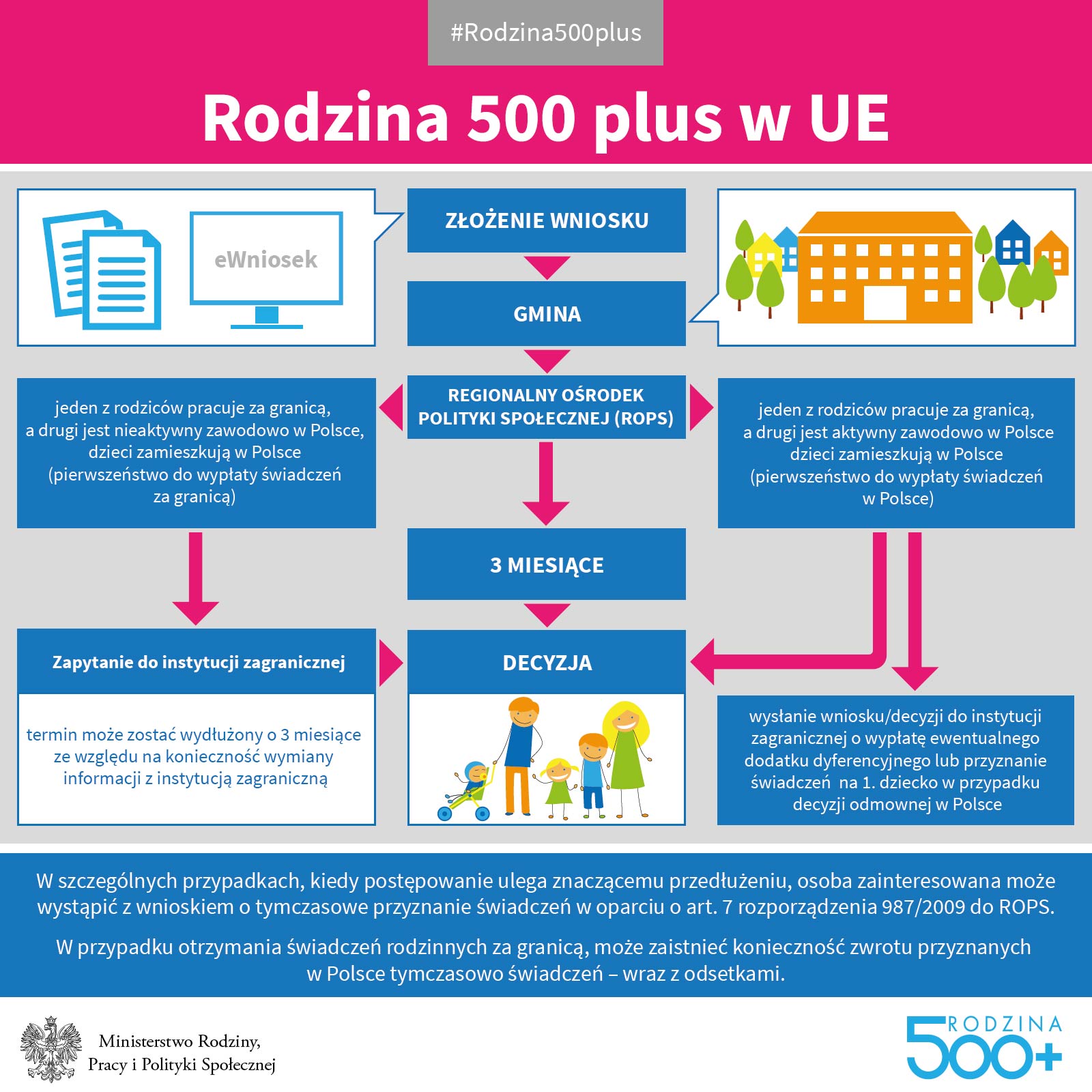 Wnioski muszą być przekazane do rozpatrzenia Marszałkowi Województwa wtedy, gdy jeden bądź więcej członków rodziny, występującej o świadczenie wychowawcze, mieszka lub pracuje za granicą. Dotyczy to także rodziców rozwiedzionych lub żyjących w związkach partnerskich.