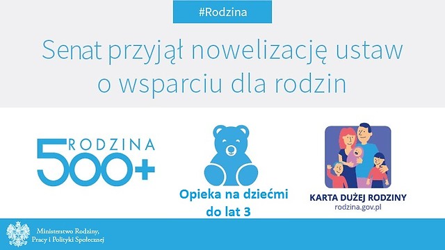 Ustawa o zmianie niektórych ustaw związanych z systemami wsparcia rodzin przyjęta przez Senat. Izba wyższa parlamentu – podobnie jak Sejm – uchwaliła nowe przepisy. W praktyce oznacza to korzystne dla polskich rodzin zmiany, dotyczące programu „Rodzina 500+”, świadczeń rodzinnych i alimentacyjnych, opieki żłobkowej oraz Karty Dużej Rodziny.