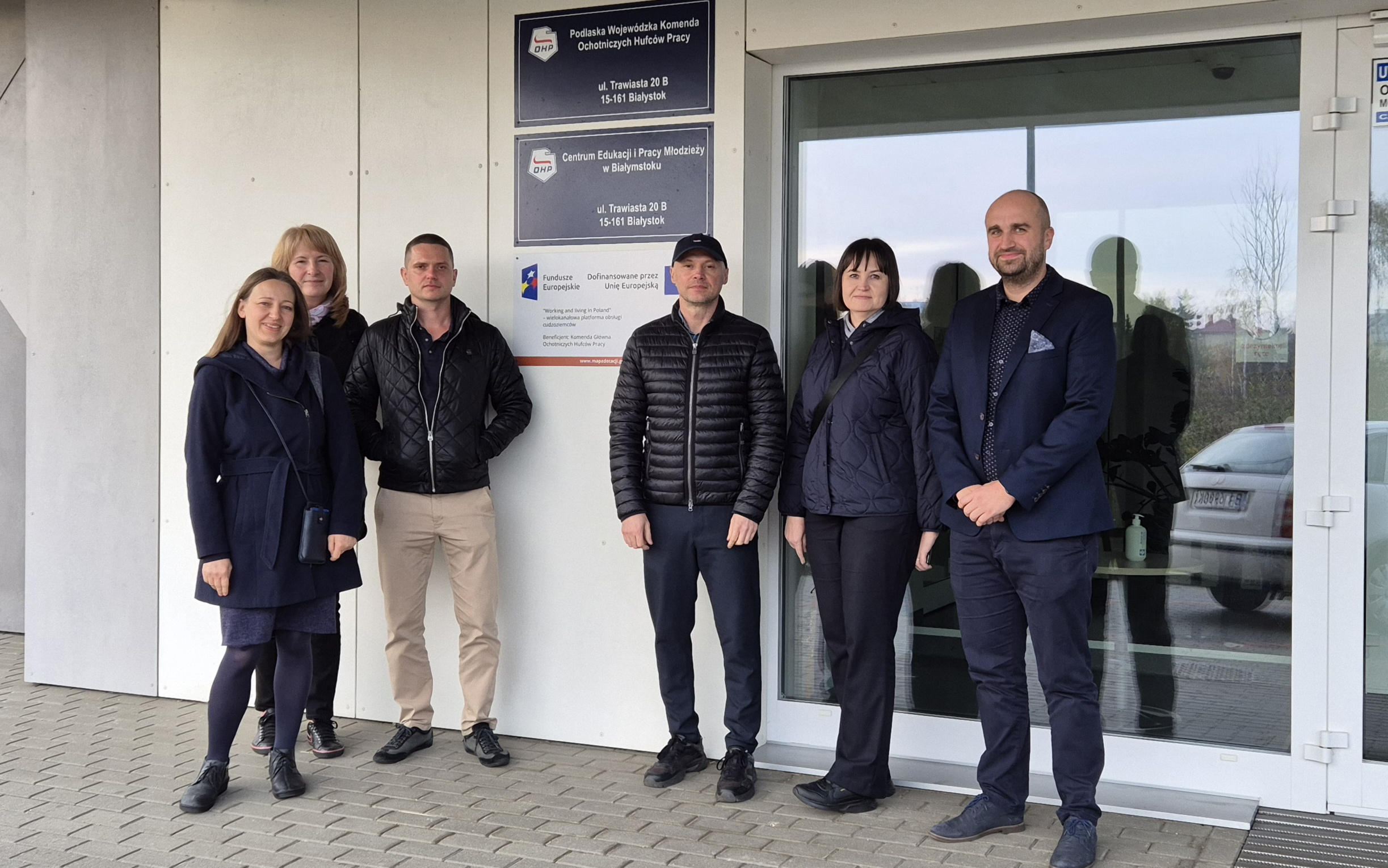 W dniach 23-24 października 2025 r. w ramach projektu „Working and living in Poland” - wielokanałowa platforma obsługi cudzoziemców, realizowanego w ramach programu Fundusze Europejskie dla Rozwoju Społecznego 2021-2027, współfinansowanego ze środków Europejskiego Funduszu Społecznego Plus, odbyła się delegacja pracowników Departamentu Rynku Pracy (DRP) Ministerstwa Rodziny, Pracy i Polityki Społecznej (Lidera Projektu) do biura projektowego Partnera - Komendy Głównej Ochotniczych Hufców Pracy (KG OHP) - w Białymstoku.