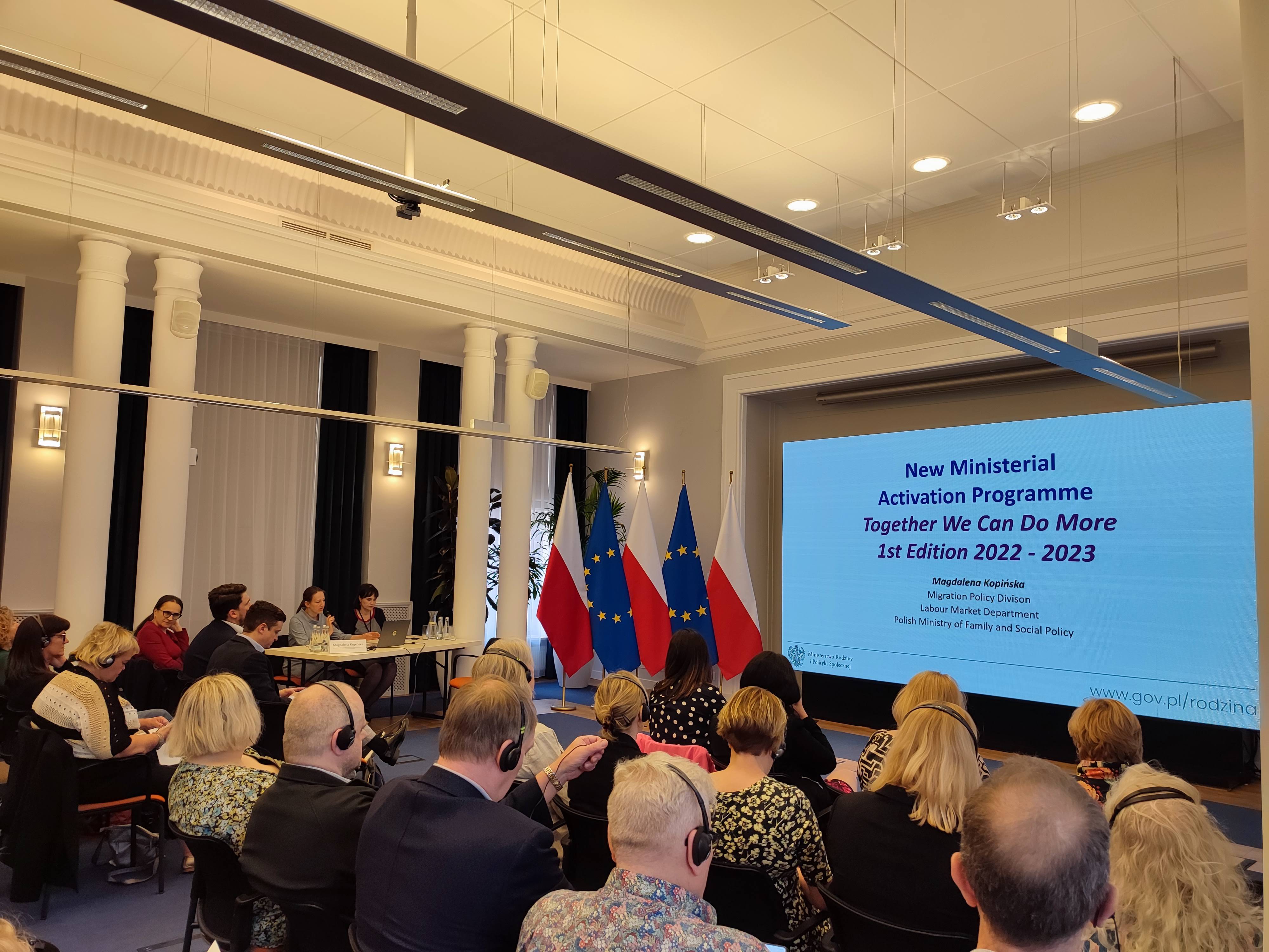 Zaprezentowano projekt, ktory wspiera obywateli Ukrainy pt. Równi na rynku pracy realizowany w ramach ministerialnego programu Razem możemy więcej oraz pilotaż Pracuj z rodziną na nowo, który wspiera osoby oddalone od rynku pracy.