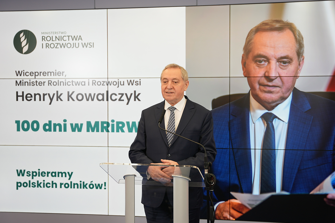 Wicepremier, minister rolnictwa i rozwoju wsi Henryk Kowalczyk podsumował dziś pierwsze 100 dni urzędowania w resorcie rolnictwa.