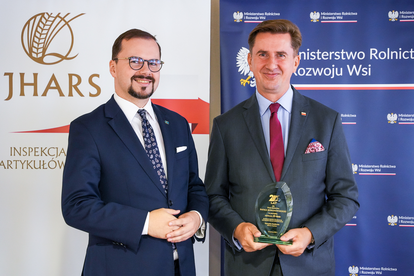 Okolicznościową statuetkę z rąk Głównego Inspektora Jakości Handlowej Artykułów Rolno-Spożywczych otrzymał także sekretarz stanu w MRiRW Rafał Romanowski. Jak podkreślił główny inspektor JHARS Przemysław Rzodkiewicz, to sekretarz stanu bezpośrednio współpracuje z Inspekcją, która właśnie z nim konsultuje wszystkie ważne sprawy.