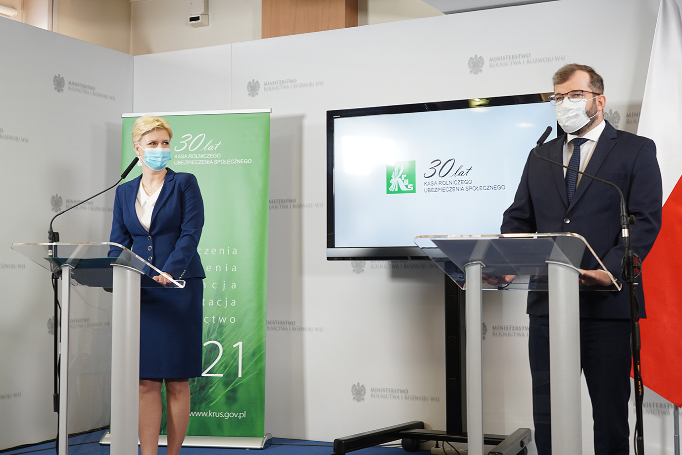 Dziś odbyła się konferencja prasowa ministra rolnictwa i rozwoju wsi Grzegorza Pudy i prezes Kasy Rolniczego Ubezpieczenia Społecznego Aleksandry Hadzik poświęcona działaniom KRUS na rzecz zdrowia i bezpieczeństwa rolników.