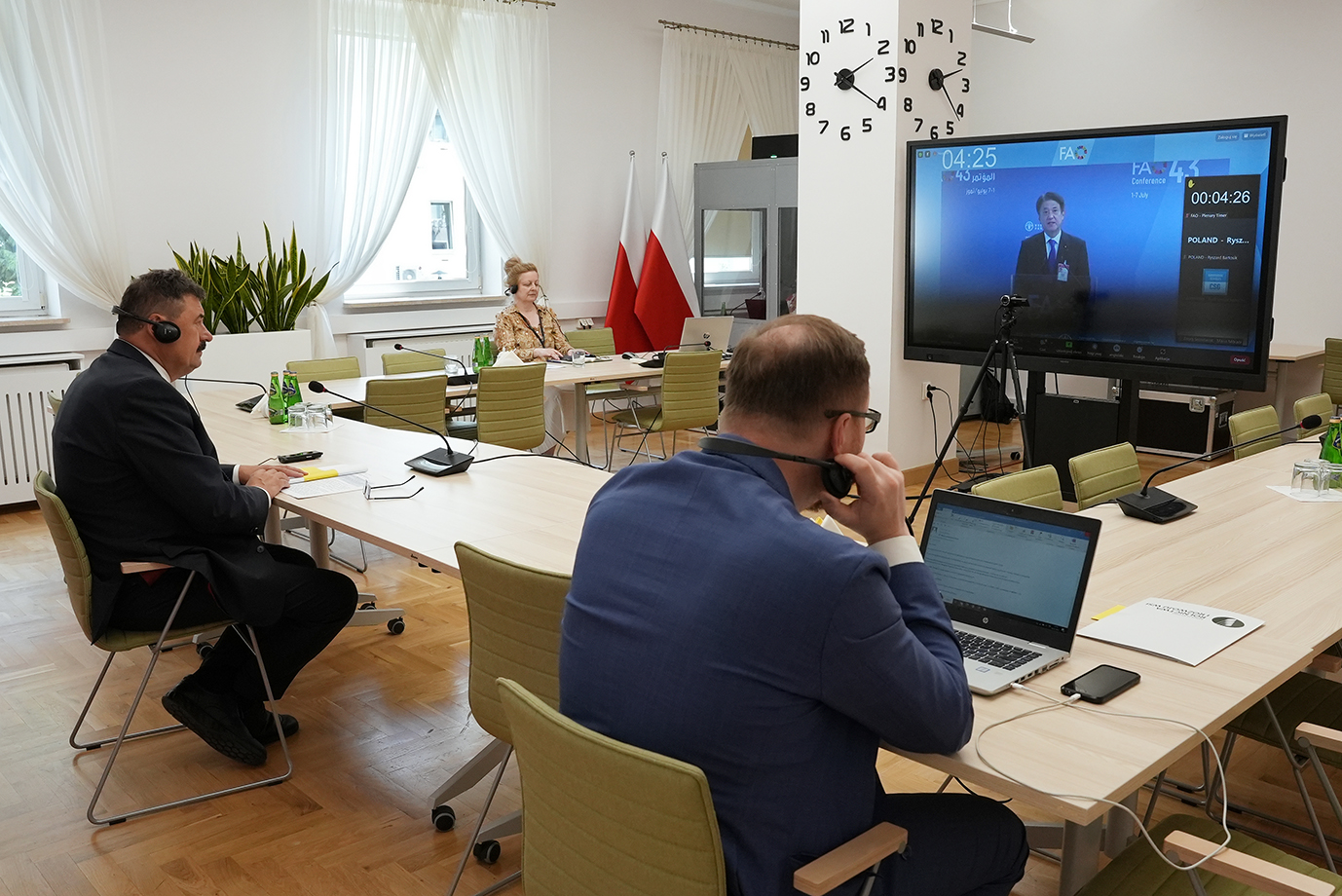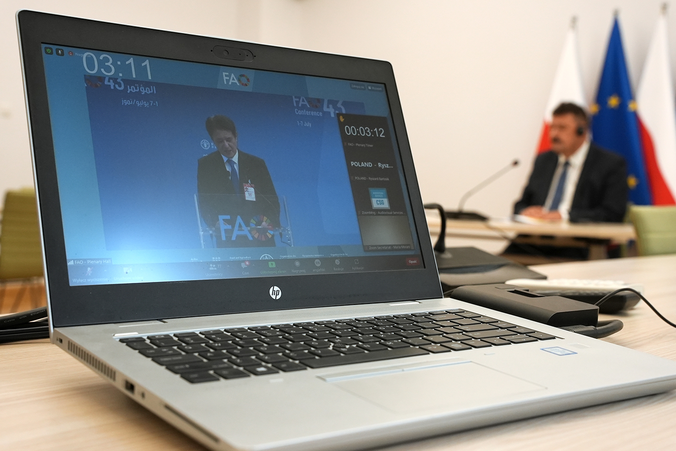 Sekretarz stanu Ryszard Bartosik uczestniczył 4 lipca br. w 43. Sesji Konferencji Organizacji Narodów Zjednoczonych ds. Wyżywienia i Rolnictwa FAO, zorganizowanej w formule online. Wiceminister zabrał głos w debacie ogólnej w ramach punktu „Ocena Stanu Wyżywienia i Rolnictwa”.