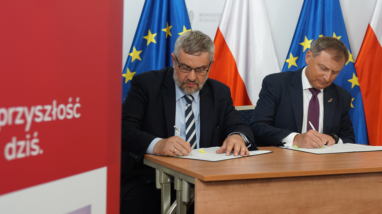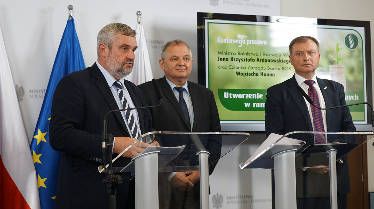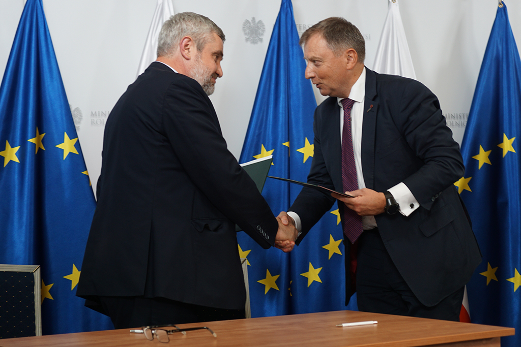 Umowę podpisali: minister rolnictwa i rozwoju wsi Jan Krzysztof Ardanowski oraz reprezentujący Bank Gospodarstwa Krajowego – członek Zarządu BGK Wojciech Hann.