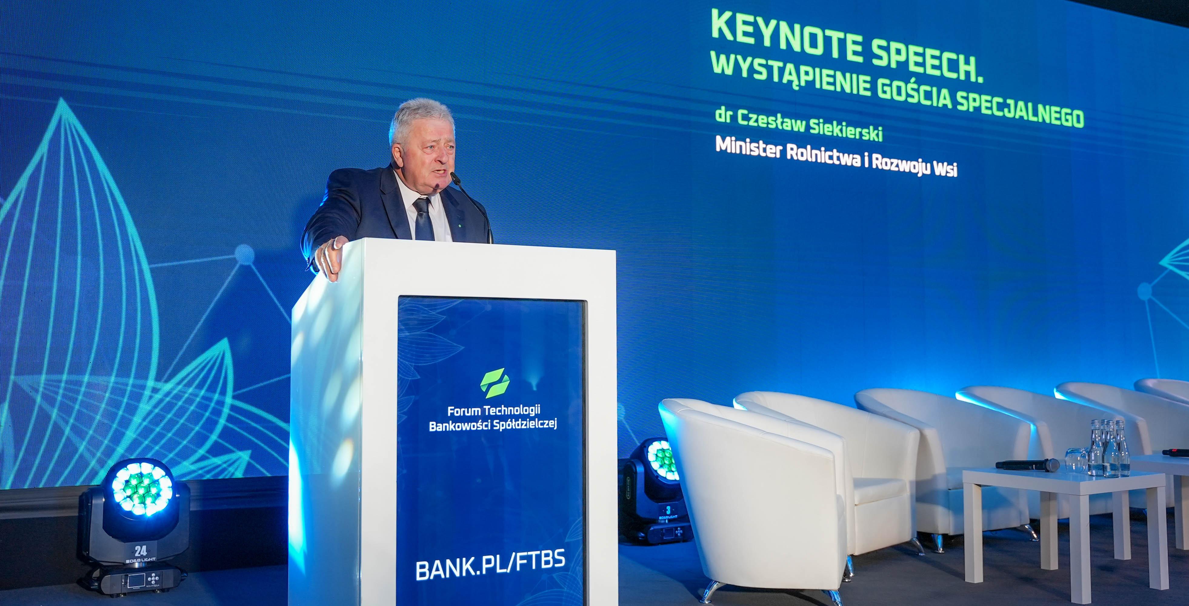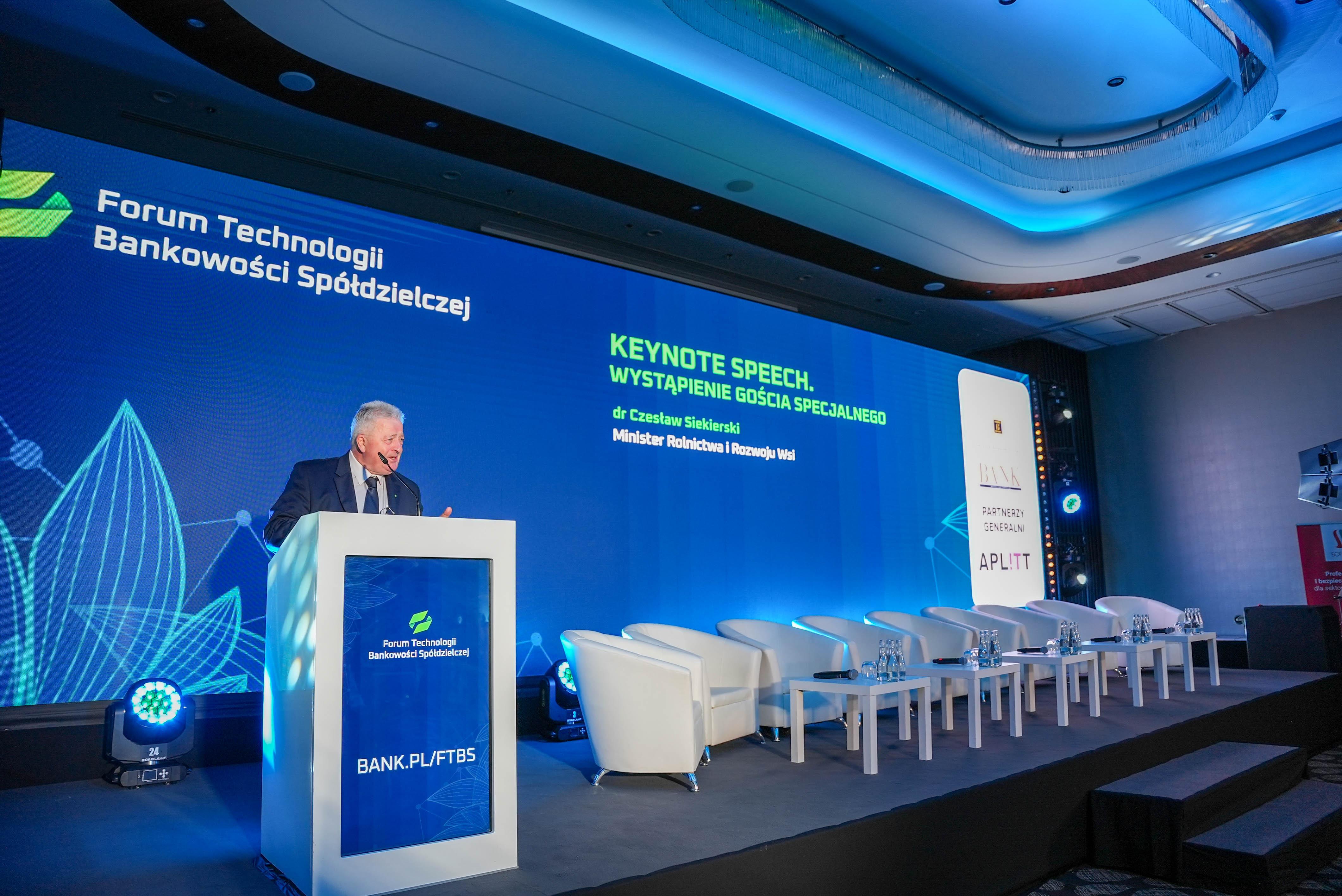 Minister Siekierski w kontekście wyzwań, z którymi mierzy się sektor bankowości spółdzielczej, nawiązał do dynamicznego rozwoju bankowości elektronicznej oraz do przemian na obszarach wiejskich.