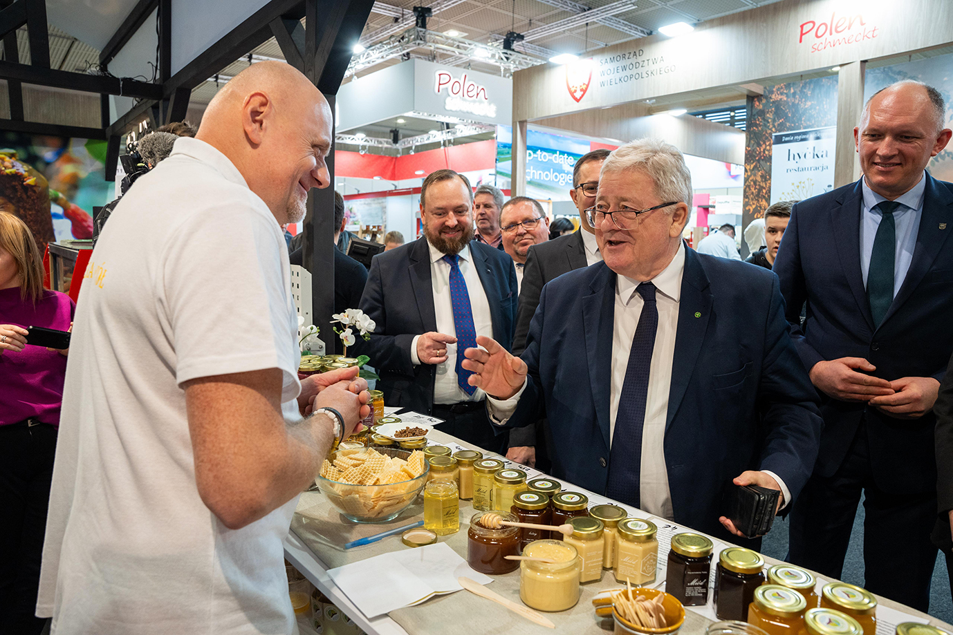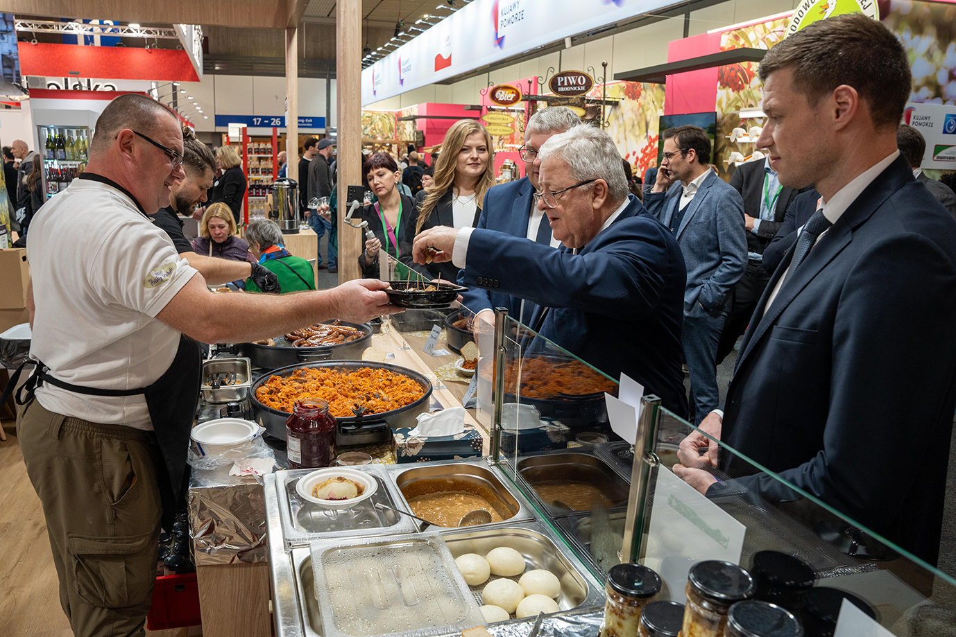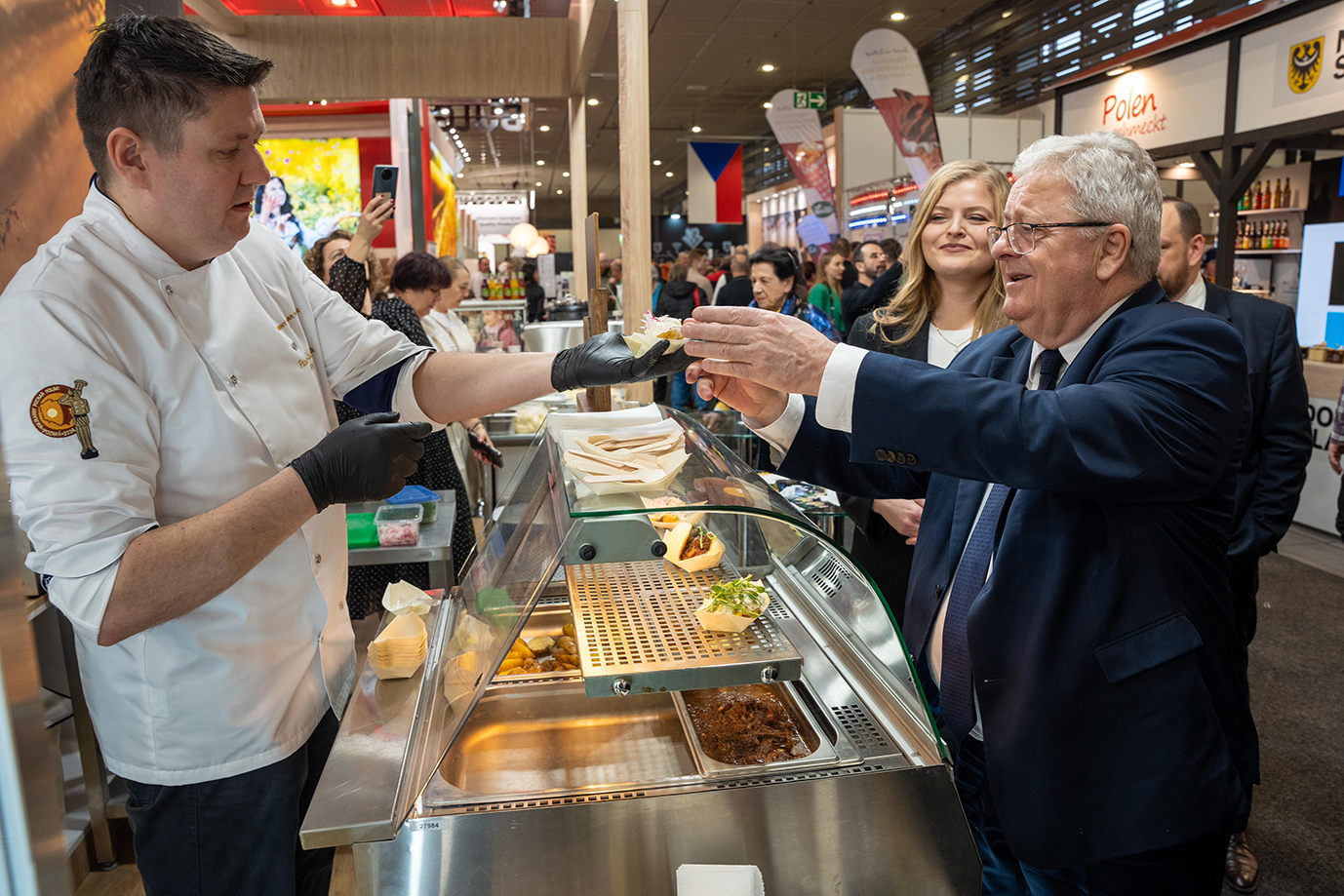 W ramach uroczystego otwarcia targów odbył się oficjalny obchód, podczas którego polskie stoisko odwiedził minister wyżywienia i rolnictwa RFN Cem Özdemir. Wśród uczestników obchodu znaleźli się także komisarz UE ds. rolnictwa Christophe Hansen oraz burmistrz Berlina Kai Wegner. Polscy szefowie kuchni zaserwowali naszym gościom polskie specjały.