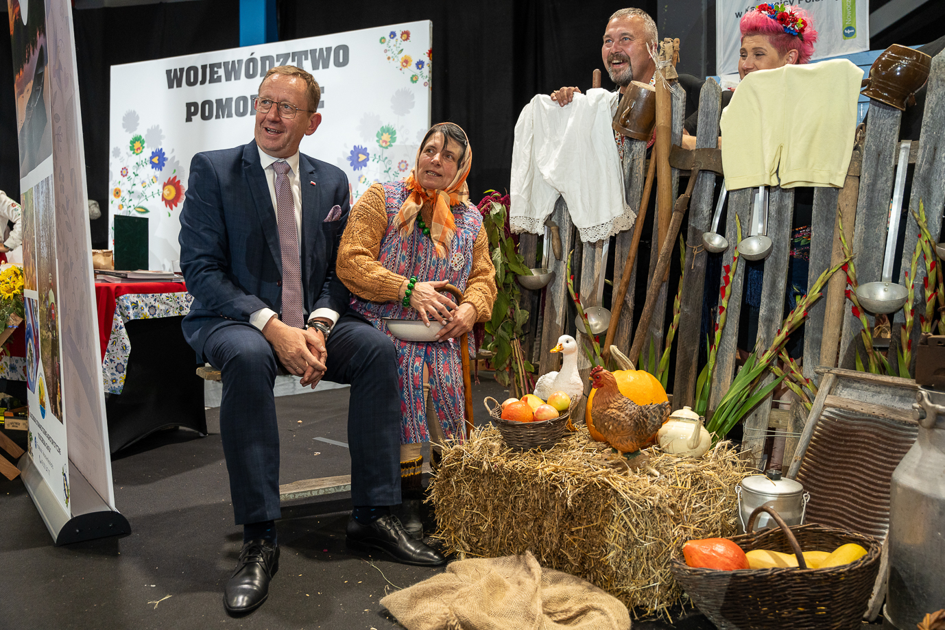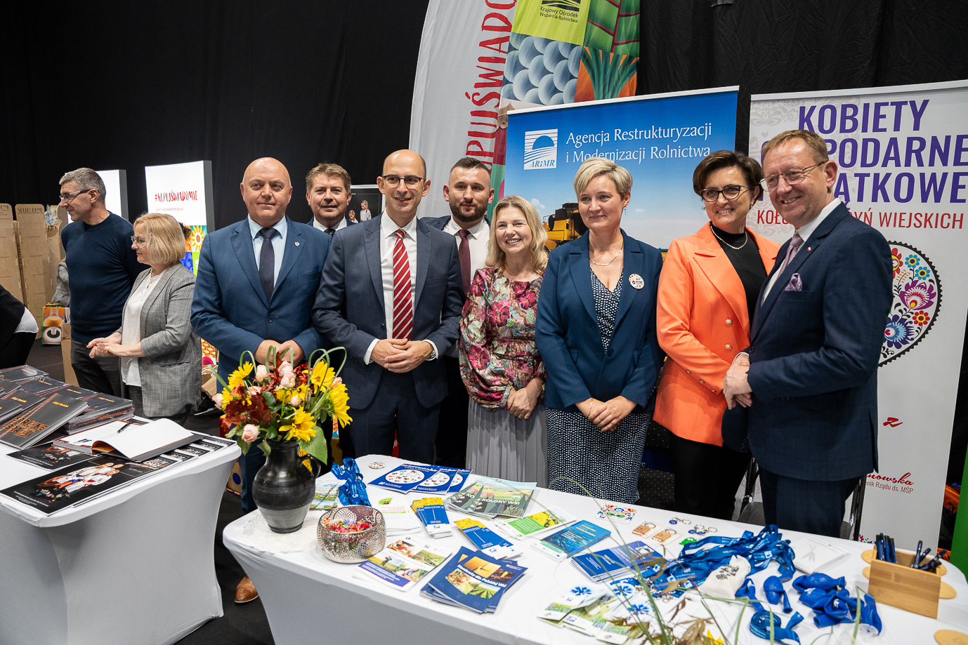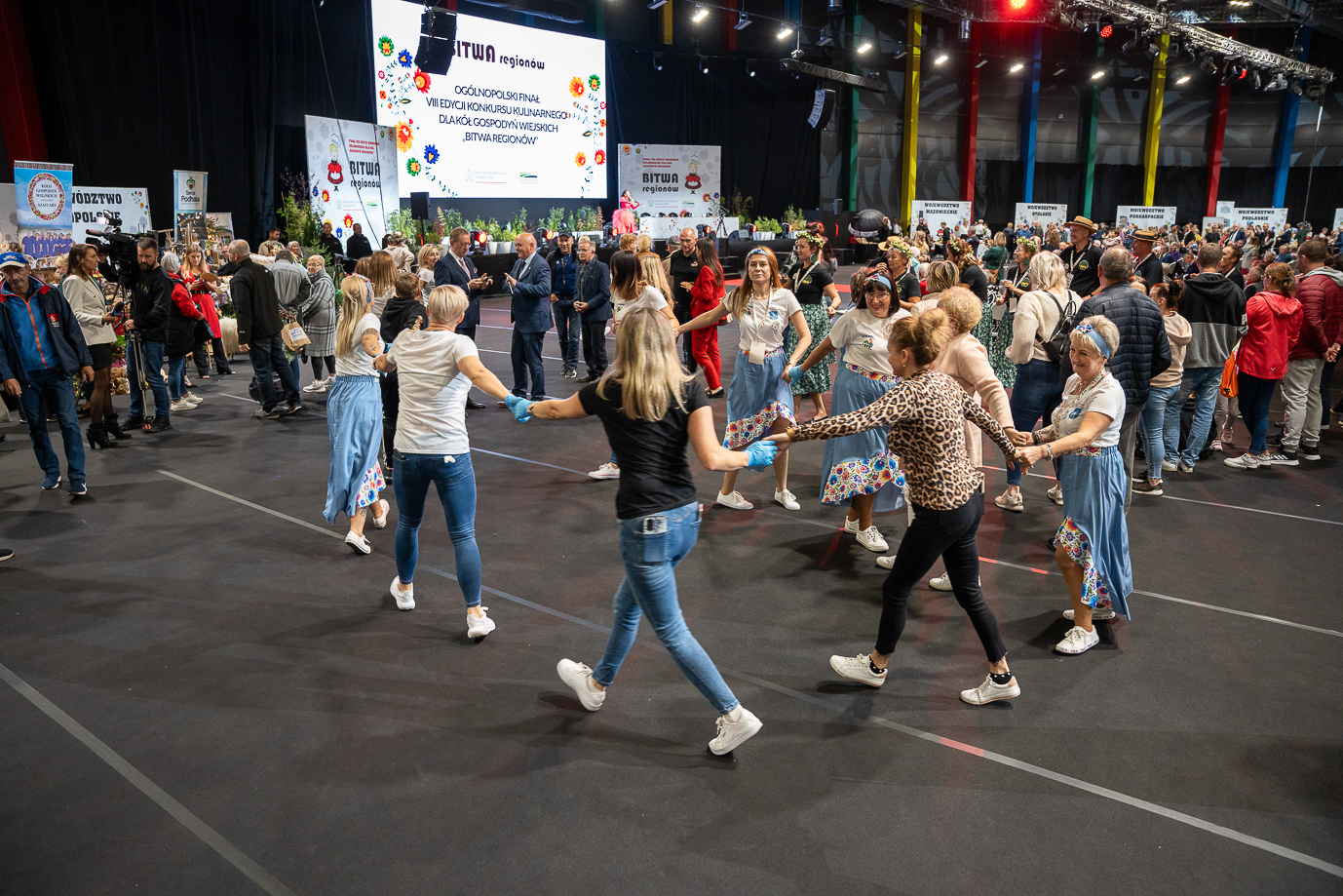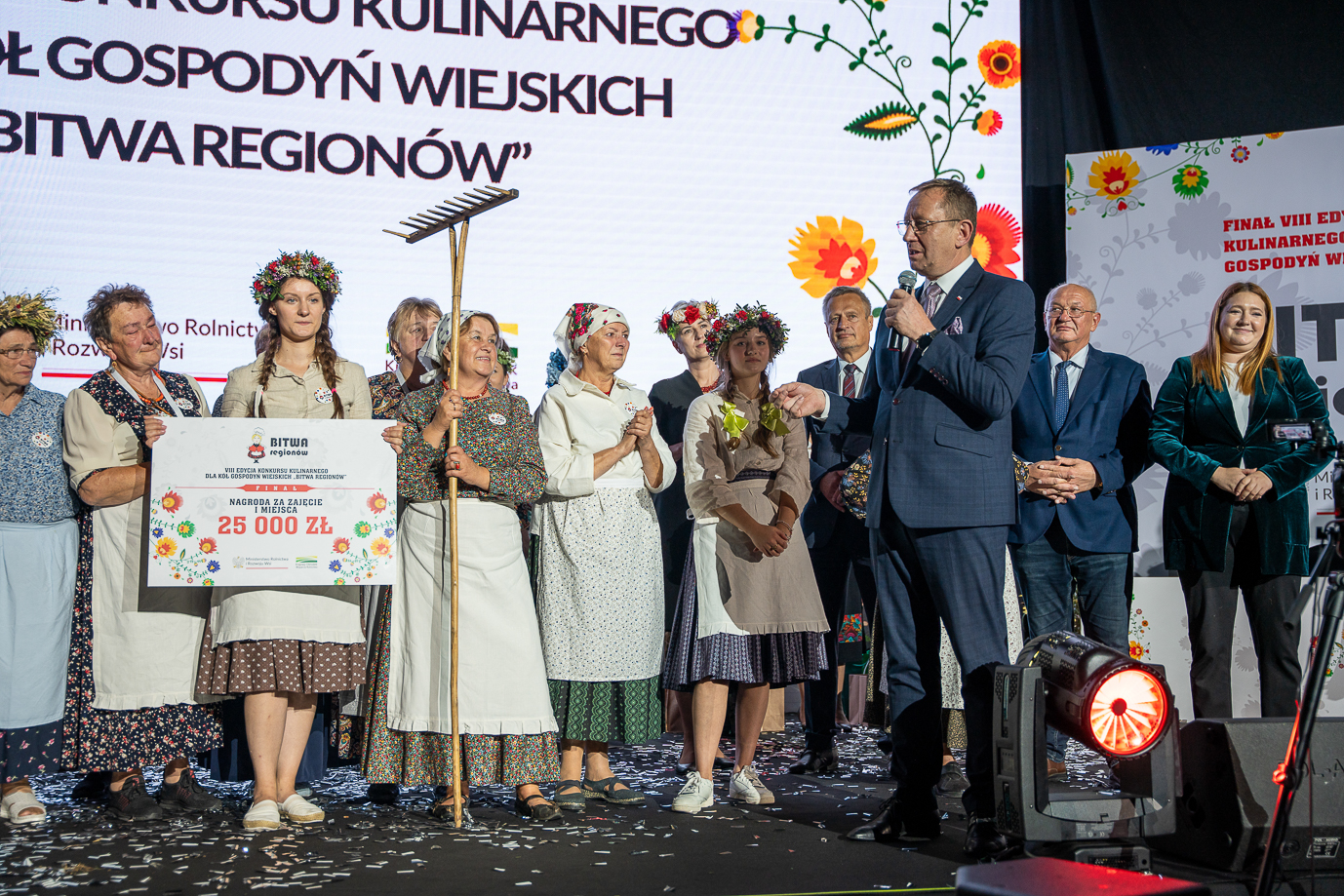 Minister rolnictwa i rozwoju wsi Robert Telus wraz z sekretarz stanu Anną Gembicką i podsekretarzem stanu Krzysztofem Cieciórą obserwowali zmagania Kół Gospodyń Wiejskich w finale VIII edycji Konkursu Bitwa Regionów.