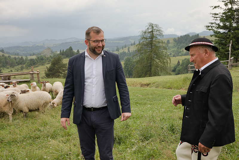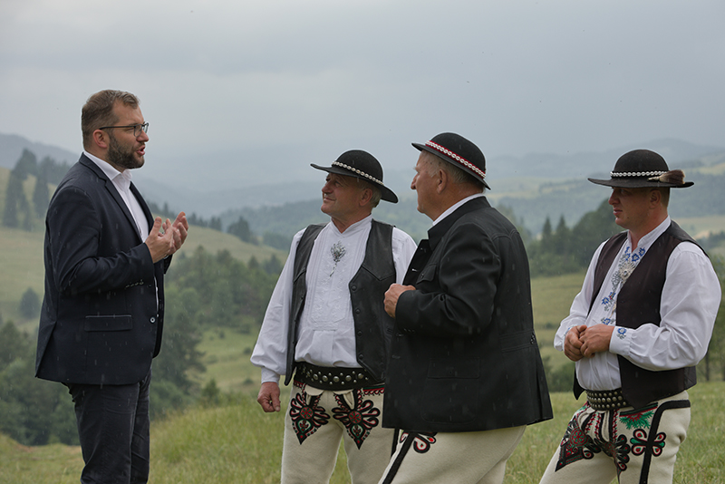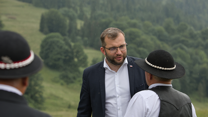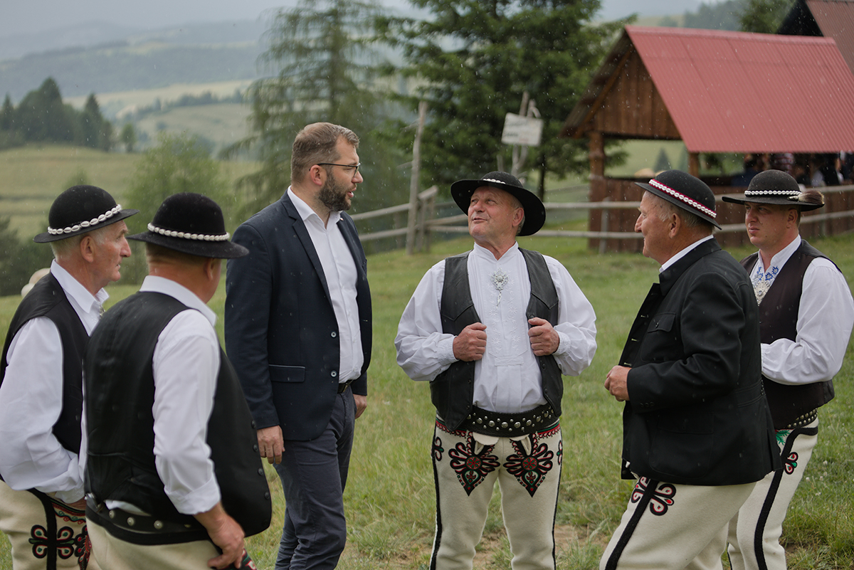 O pasterskich tradycjach, polskiej jagnięcinie, możliwościach rozwoju sprzedaży oraz promocji produktów owczych minister rolnictwa i rozwoju wsi Grzegorz Puda rozmawiał z bacami i juhasami, w bacówce na zboczach Przełęczy Rozdziela.