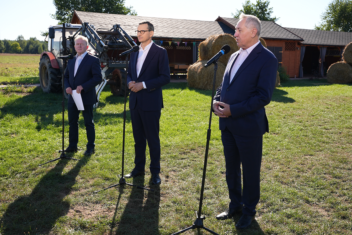 W Kolonii Pogorzel koło Osiecka odbyła się dziś wspólna konferencja prasowa premiera Mateusza Morawieckiego, wicepremiera, ministra rolnictwa i rozwoju wsi Henryka Kowalczyka oraz komisarza ds. rolnictwa Unii Europejskiej Janusza Wojciechowskiego w sprawie zatwierdzenia Planu.