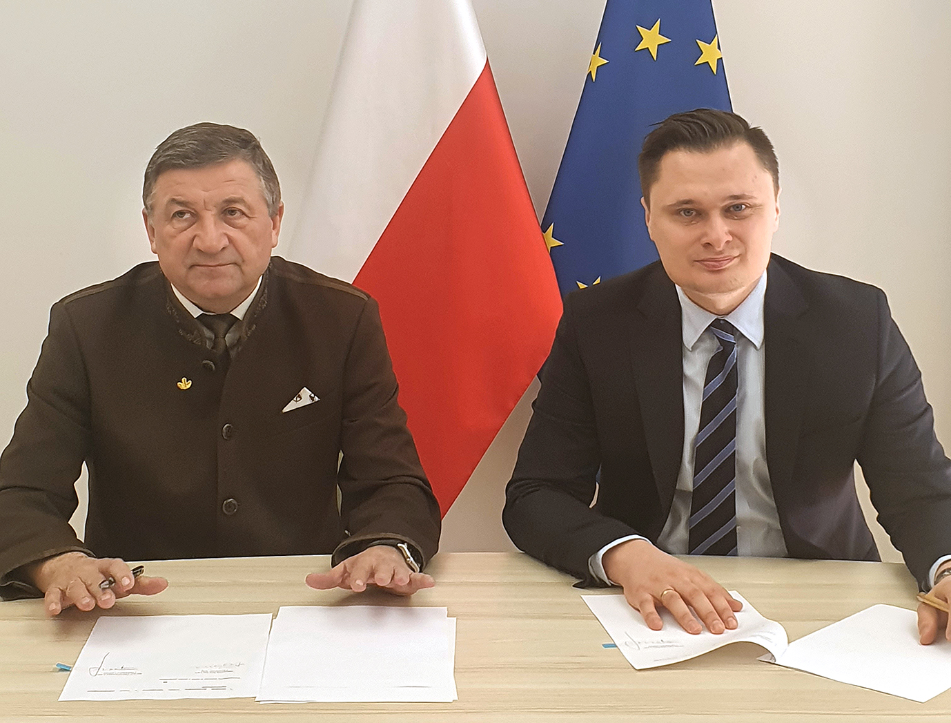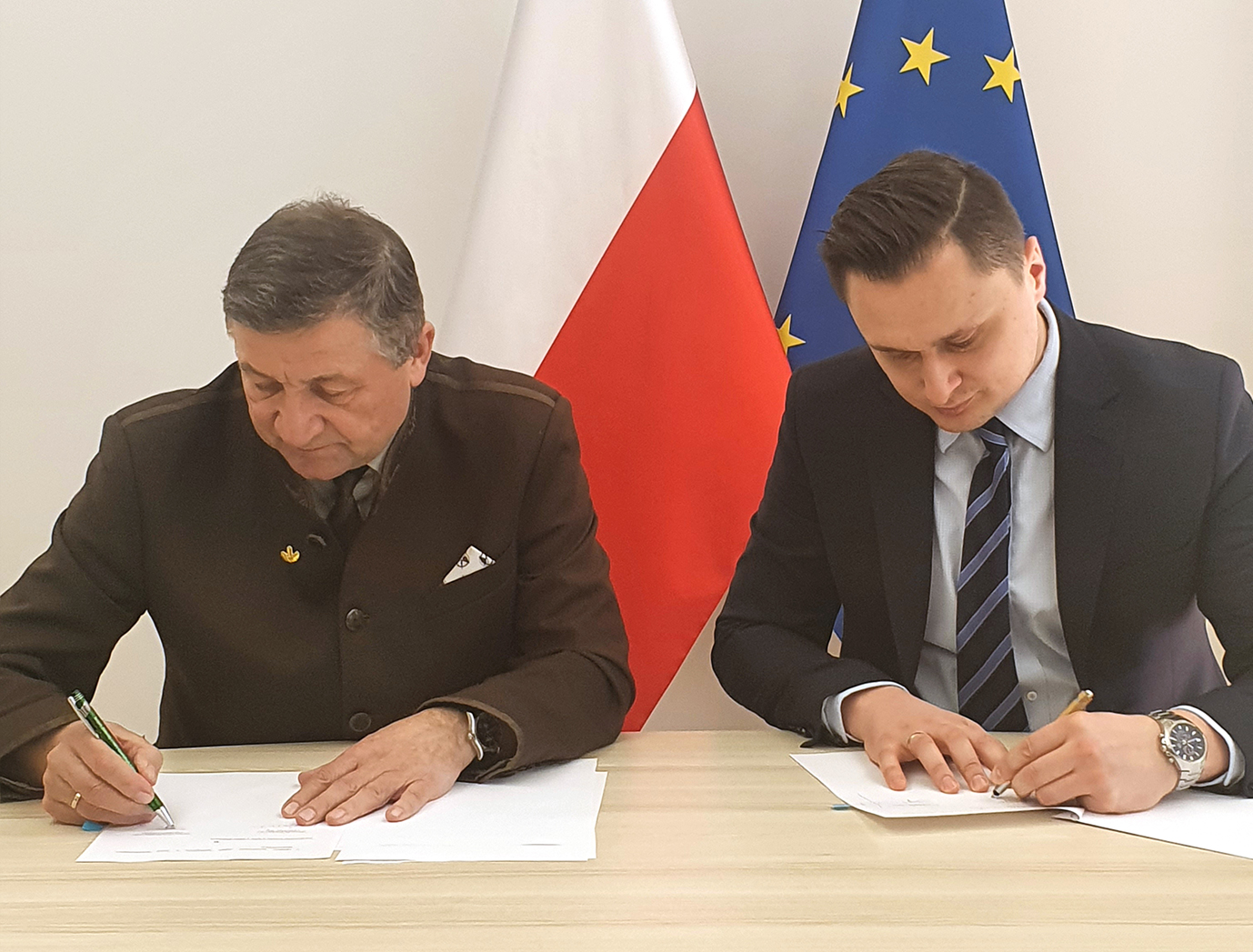 Podsekretarz stanu w MRiRW Krzysztof Ciecióra oraz dyrektor Biura Urządzania Lasu i Geodezji Leśnej Janusz Dawidziuk 17 marca 2022 r. podpisali porozumienie w sprawie współpracy przy realizacji projektu, który ma na celu ochronę terenów mokradłowych i torfowisk.