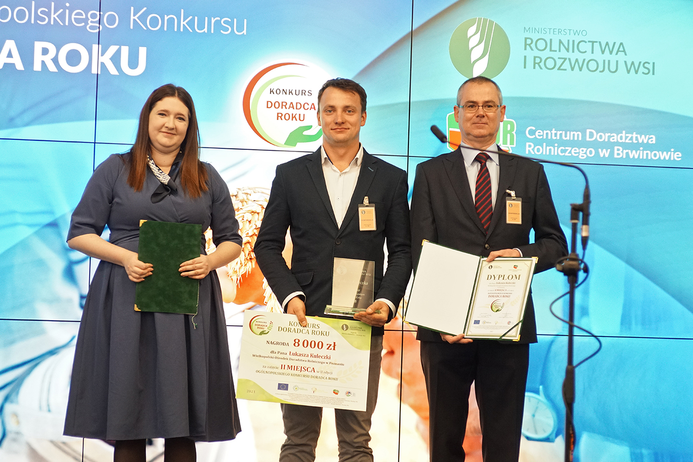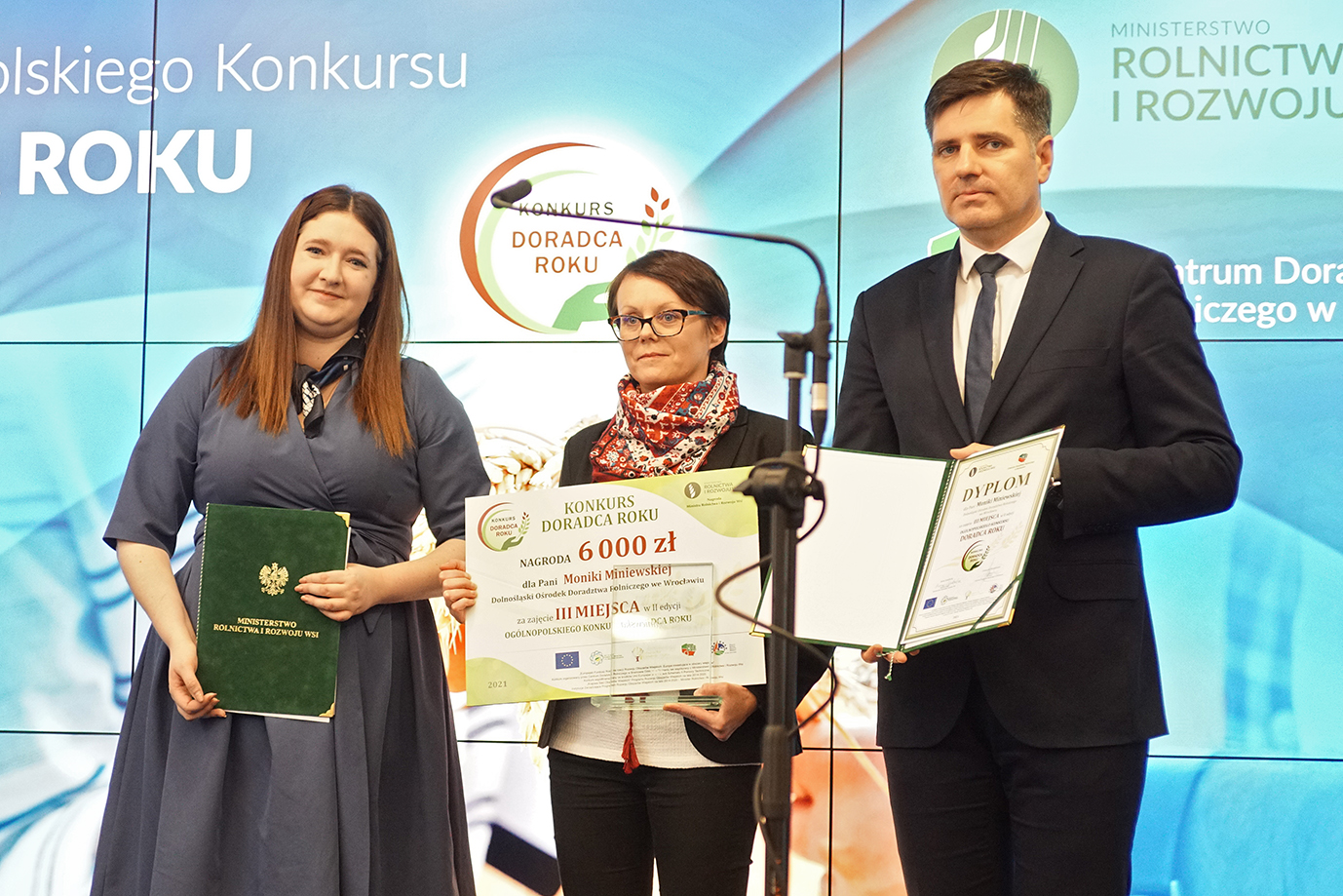 Nagrody Ministra Rolnictwa odebrali również doradcy, którzy zajęli II i III miejsce w ogólnokrajowym konkursie: Łukasz Kuleczka z Wielkopolskiego ODR oraz Monika Miniewska z Dolnośląskiego ODR.