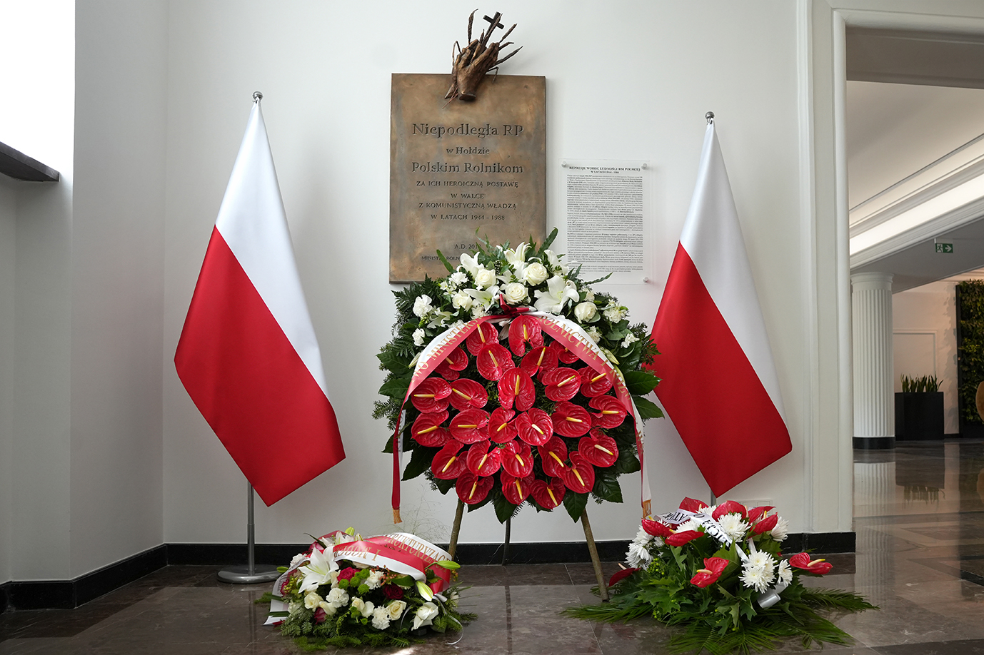 21 maja 2018 r. – w 100-lecie odzyskania przez Polskę niepodległości i 29 lat po transformacji ustrojowej – odbyła się w Warszawie uroczystość pn.: Niepodległa RP w hołdzie polskim rolnikom. To właśnie hasło znalazło się na tablicy pamiątkowej, którą kierownictwo resortu rolnictwa postanowiło uhonorować polskich rolników. Tablica zawisła wówczas w siedzibie Ministerstwa Rolnictwa i Rozwoju Wsi. Stanowi ona wyraz uznania dla zasług polskich chłopów w naszej historii, za ich udział w walkach o wolność i niepodległość. Tablicę odsłonił ówczesny minister rolnictwa i rozwoju wsi Krzysztof Jurgiel.