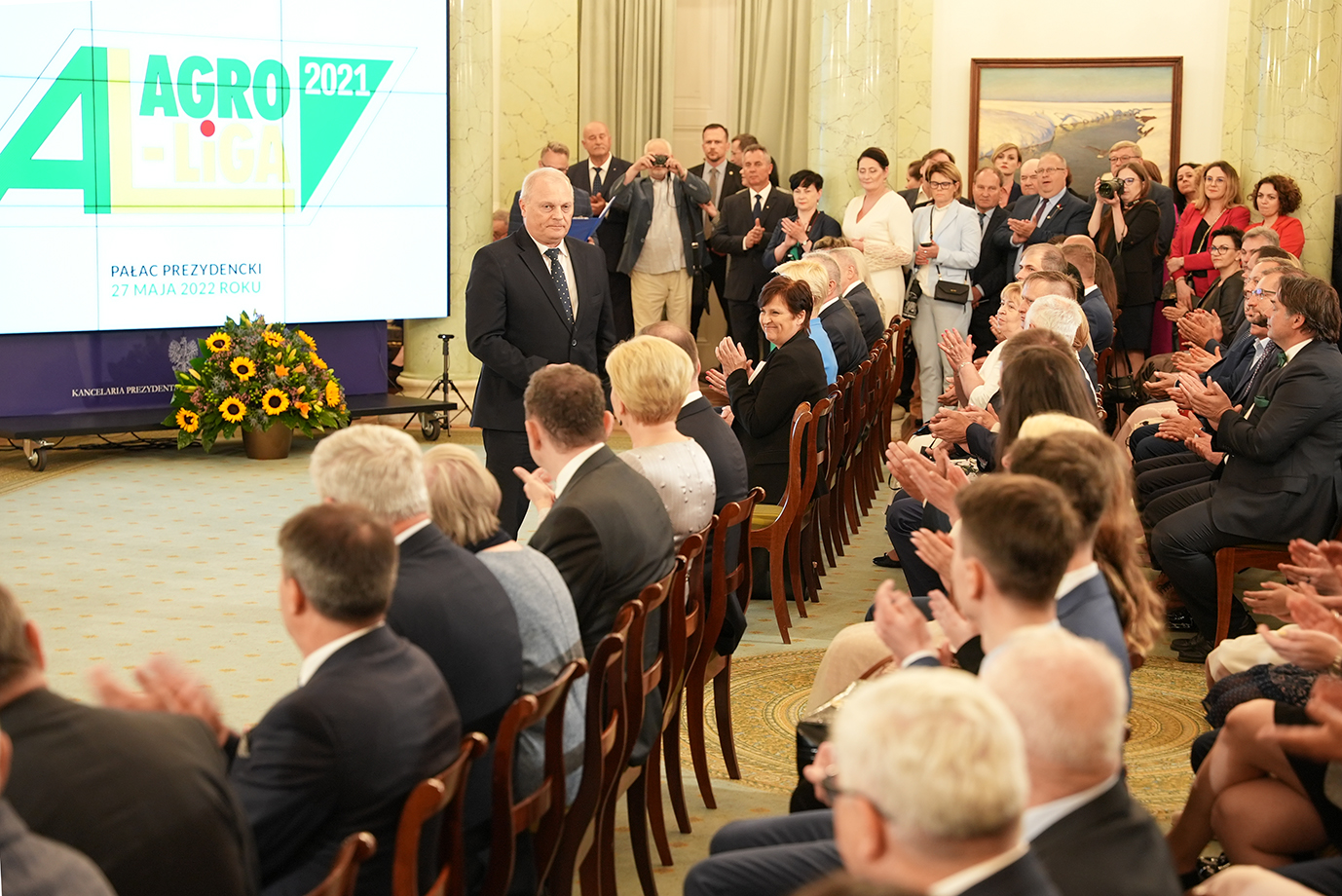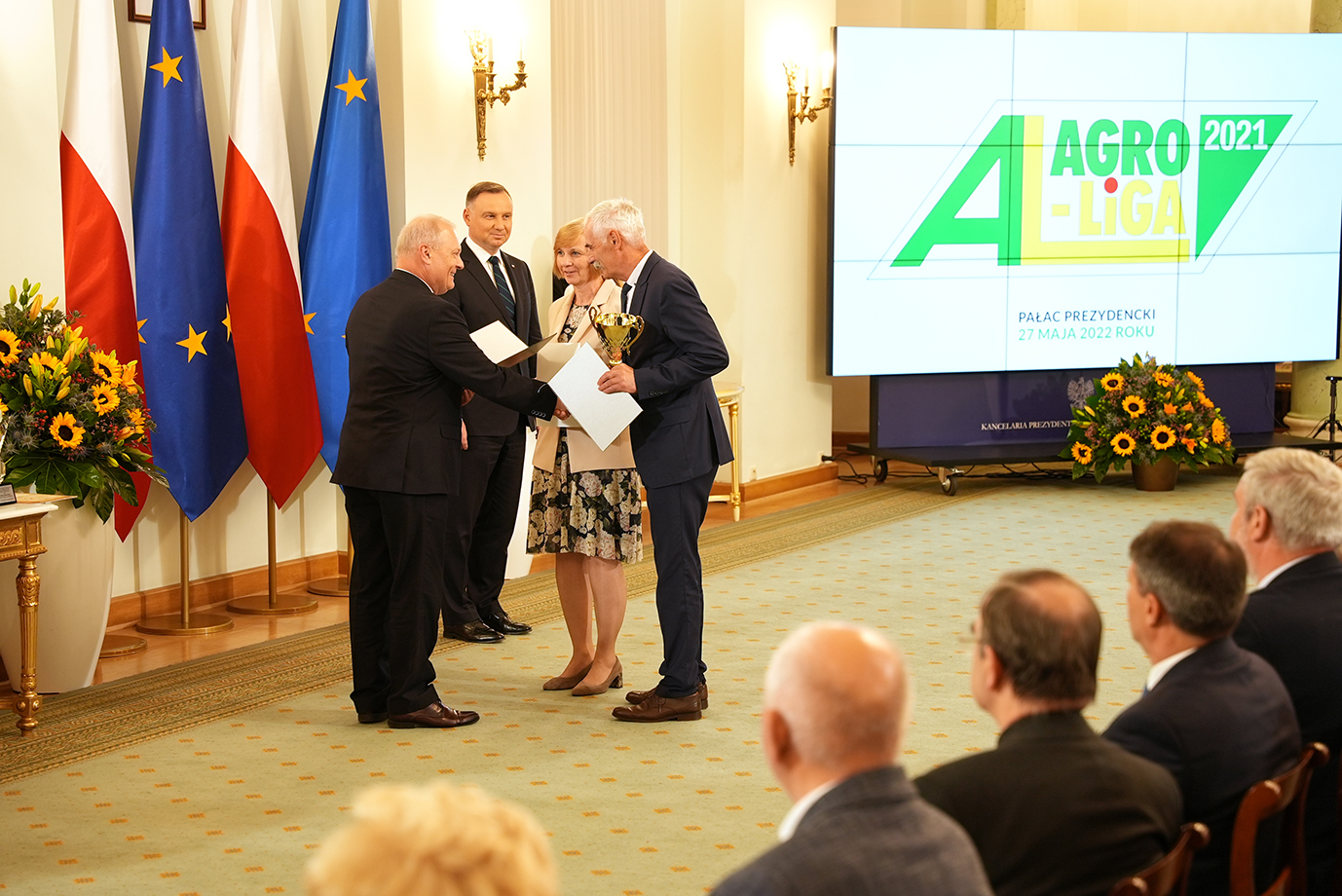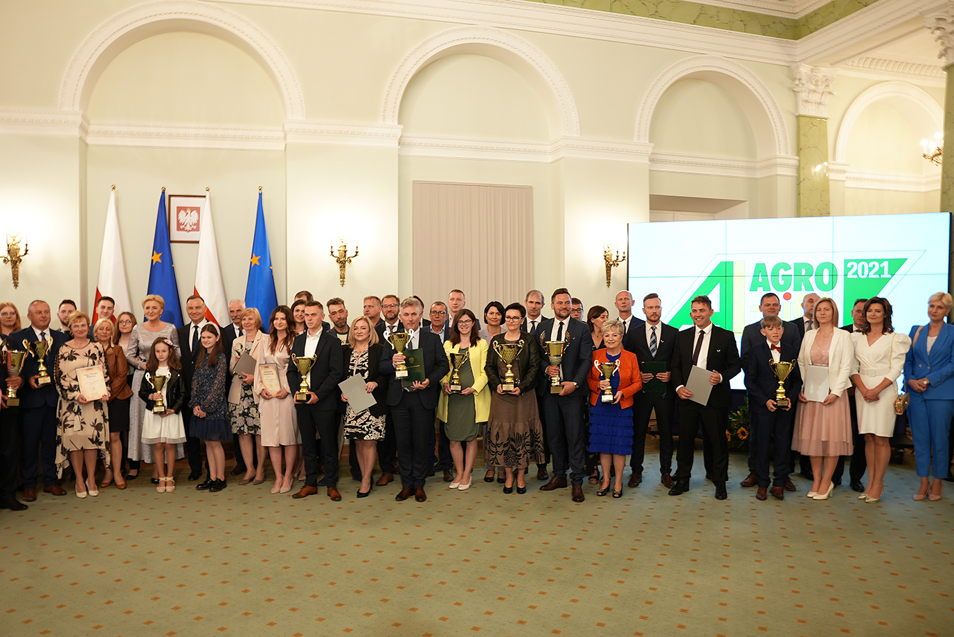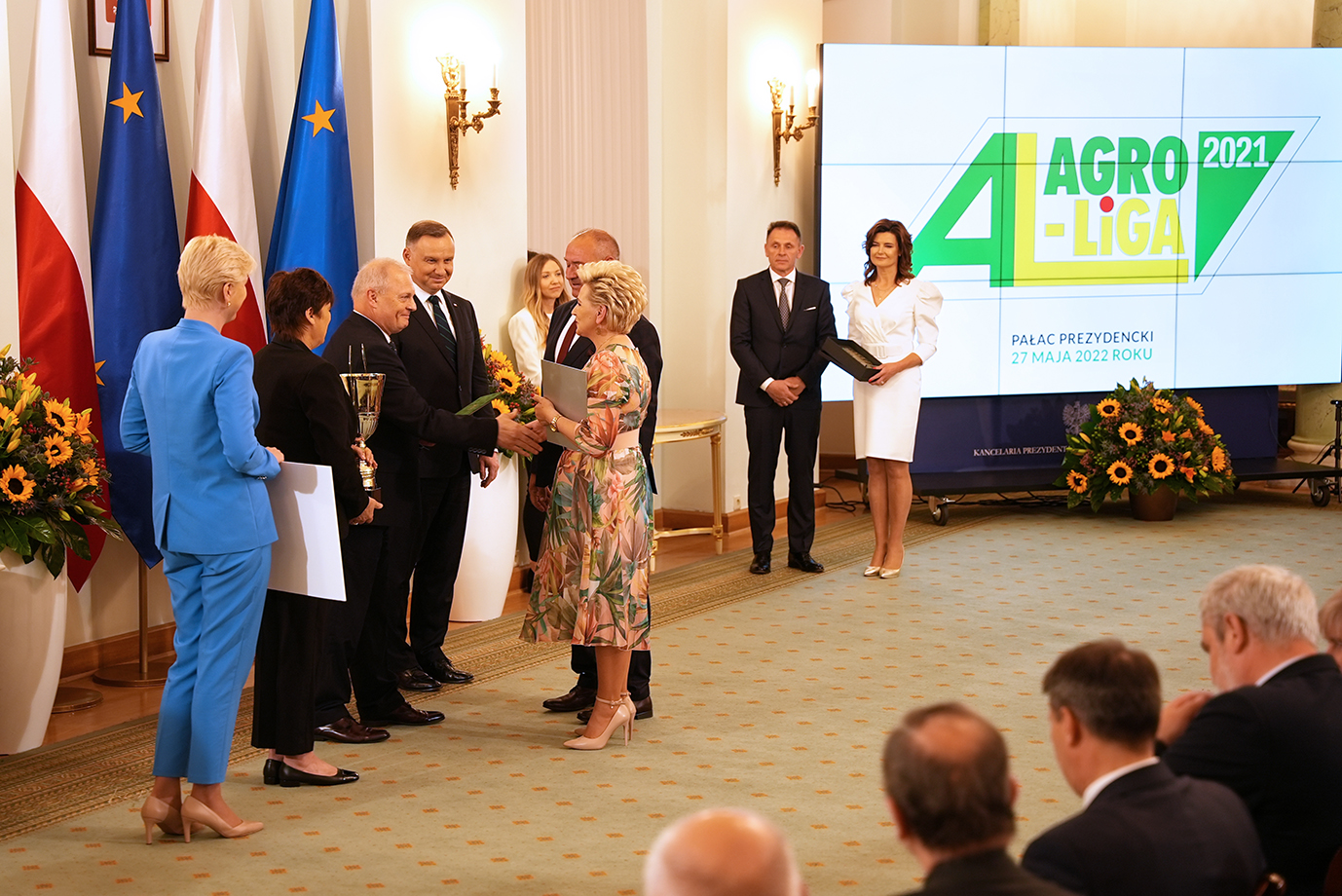 W Pałacu Prezydenckim zostały dziś wręczone nagrody w konkursie AgroLiga 2021. W gali finałowej 29. edycji konkursu uczestniczył prezydent RP Andrzej Duda, któremu towarzyszyła pierwsza dama Agata Kornhauser-Duda.