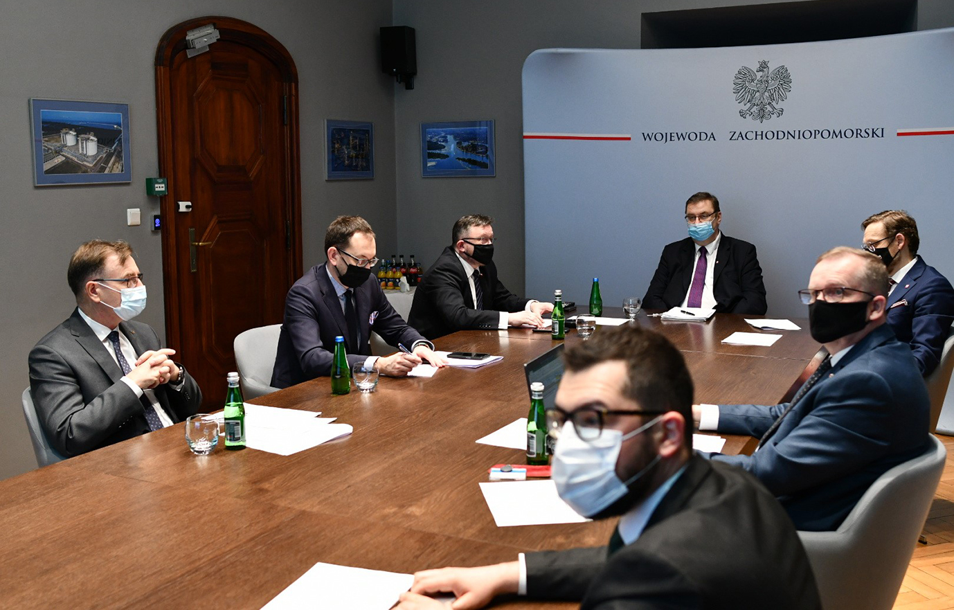 Zapobieganie, przeciwdziałanie i zwalczanie ognisk i przypadków zjadliwej ptasiej grypy oraz ASF w województwie zachodniopomorskim – to tematy posiedzenia sztabu Wojewódzkiego Zespołu Zarządzania Kryzysowego w Urzędzie Wojewódzkim w Szczecinie. W obradach, którym przewodniczył sekretarz stanu Szymon Giżyński wzięli udział m.in. także: zastępca Głównego Lekarza Weterynarii Mirosław Welz, Wojewoda Zachodniopomorski Zbigniew Bogucki, Wicewojewoda Marek Subocz, dyrektor Departamentu Oświaty i Polityki Społecznej Wsi w Ministerstwie Rolnictwa i Rozwoju Wsi Robert Jakubik oraz Maciej Prost Wojewódzki Lekarz Weterynarii.