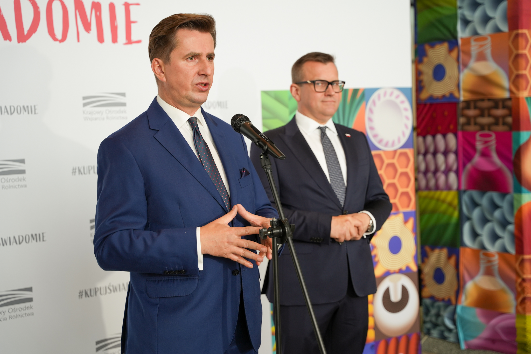 Sekretarz stanu Rafał Romanowski oraz zastępca dyrektora Krajowego Ośrodka Wsparcia Rolnictwa Marcin Wroński otworzyli dziś pierwsze, organizowane na tak dużą skalę przedsięwzięcie wystawienniczo-edukacyjne i branżowe I Festiwal Polskiej Żywności Wysokiej Jakości #KupujŚwiadomie.