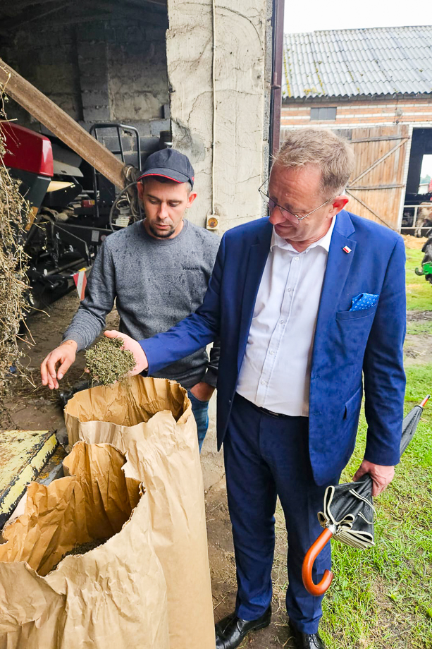 Minister Telus odwiedził także gospodarstwo państwa Moniki i Piotra Galińskich. Młodzi rolnicy, obok rolnictwa konwencjonalnego, zajmują się ekologiczną uprawą mięty.
