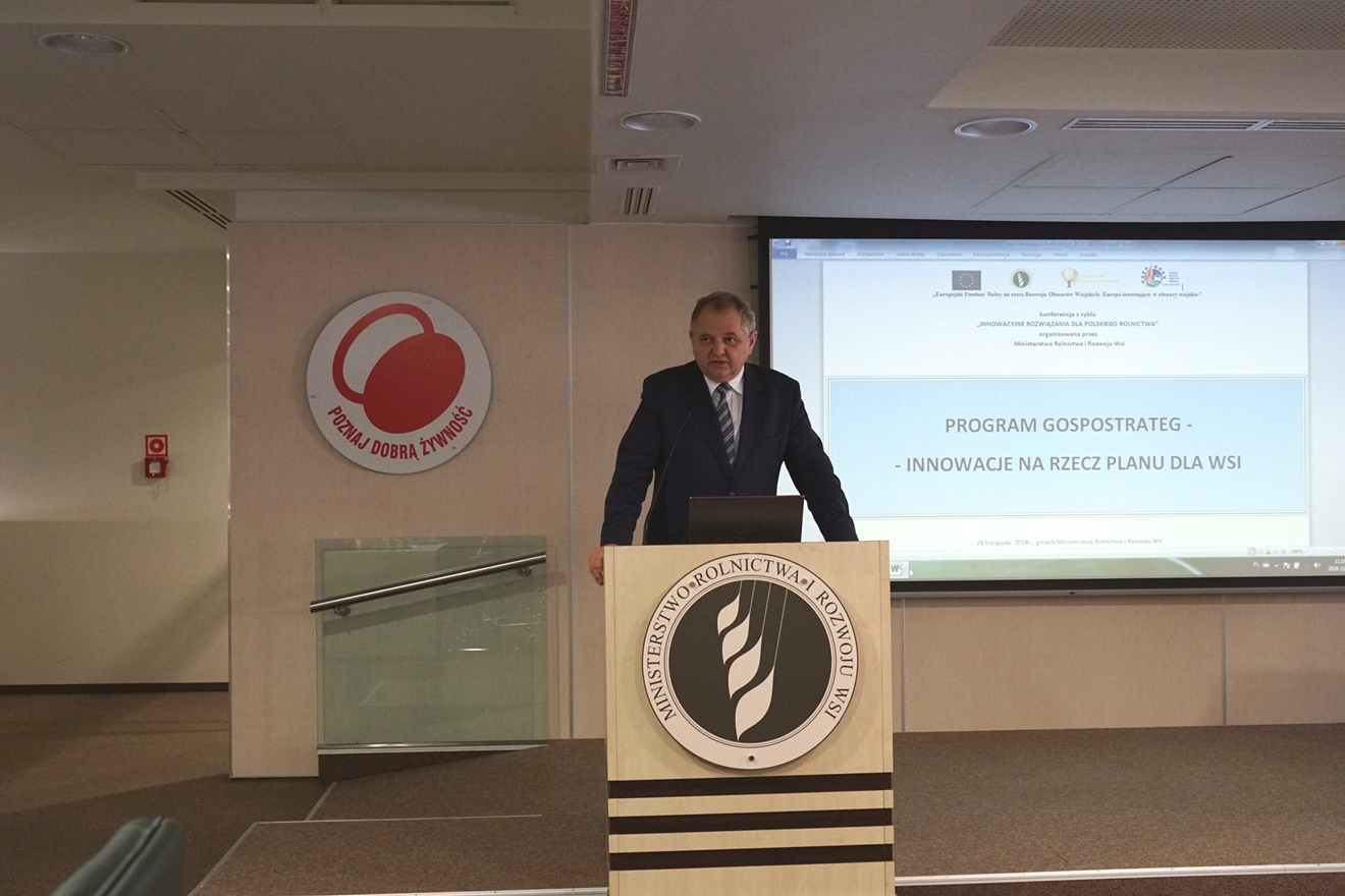 Minister Jan Krzysztof Ardanowski wziął dziś udział w konferencji pt. „Innowacyjne rozwiązania dla polskiego rolnictwa”. Była to kolejna z cyklu tego typu konferencji, tym razem jej celem była prezentacja projektów, wybranych do finansowania w I konkursie otwartym w ramach strategicznego programu badań i prac rozwojowych pn. „Społeczny i gospodarczy rozwój Polski w warunkach globalizujących się rynków - GOSPOSTRATEG”, w których w roli lidera lub członka konsorcjum uczestniczą instytucje resortu rolnictwa.