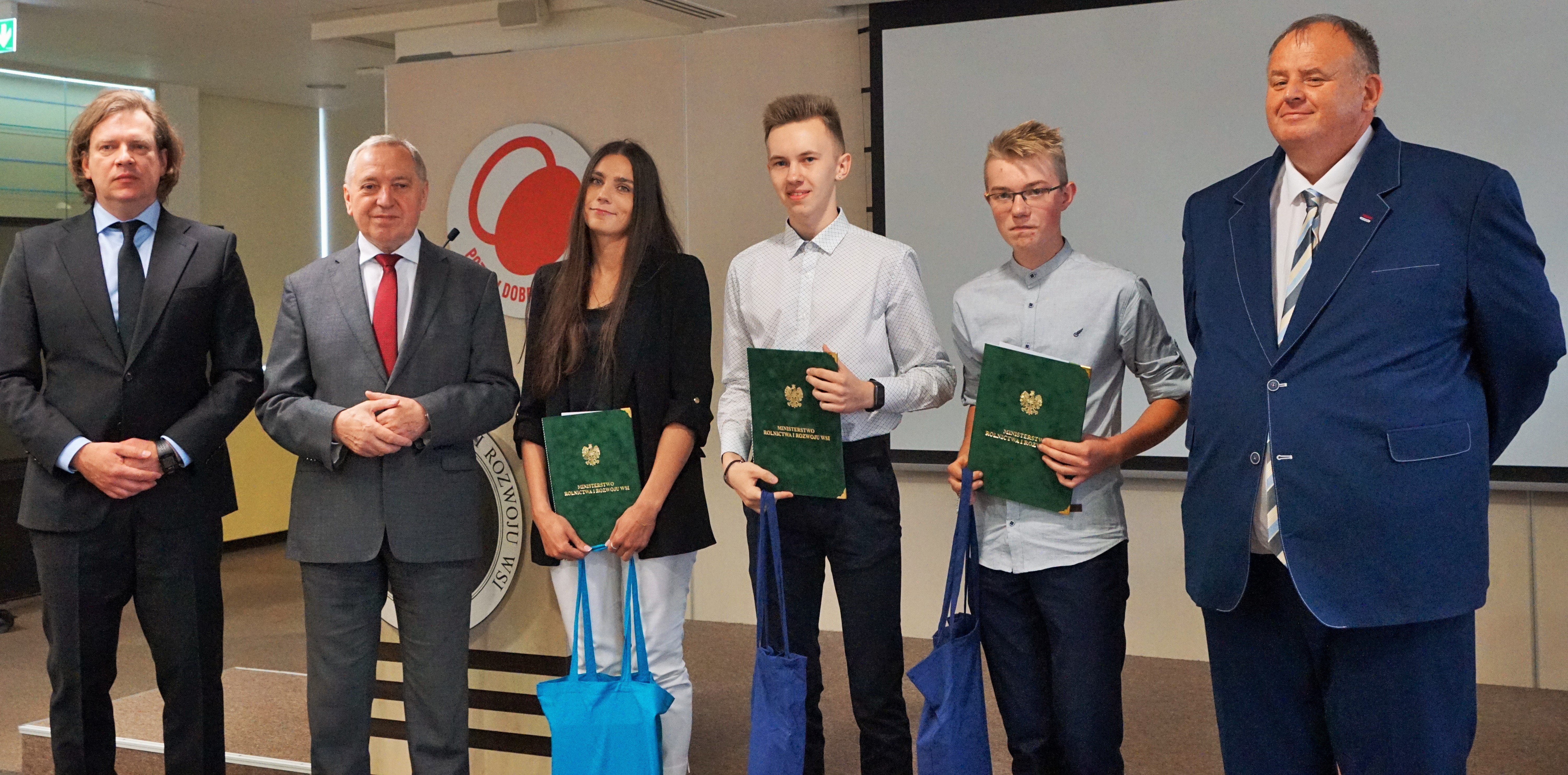 Podczas uroczystego rozstrzygnięcia konkursu „Inteligentne Rolnictwo” uczniowie szkół rolniczych prowadzonych przez MRiRW otrzymali nagrody z rąk wicepremiera, ministra rolnictwa i rozwoju wsi Henryka Kowalczyka.