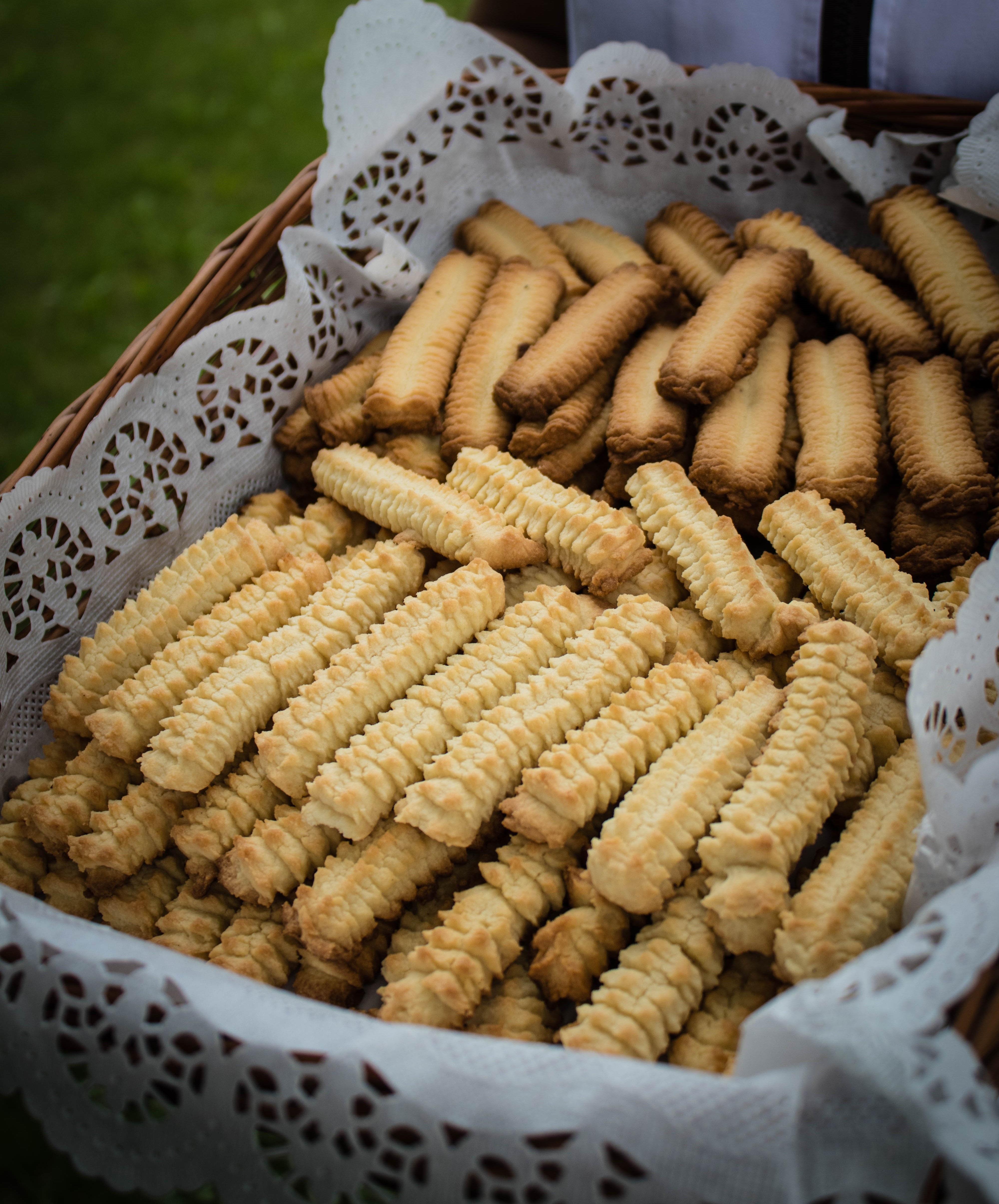 Ciasteczka podłużne z wyraźnymi charakterystycznymi rowkami odciśniętymi przez foremkę do maszynki