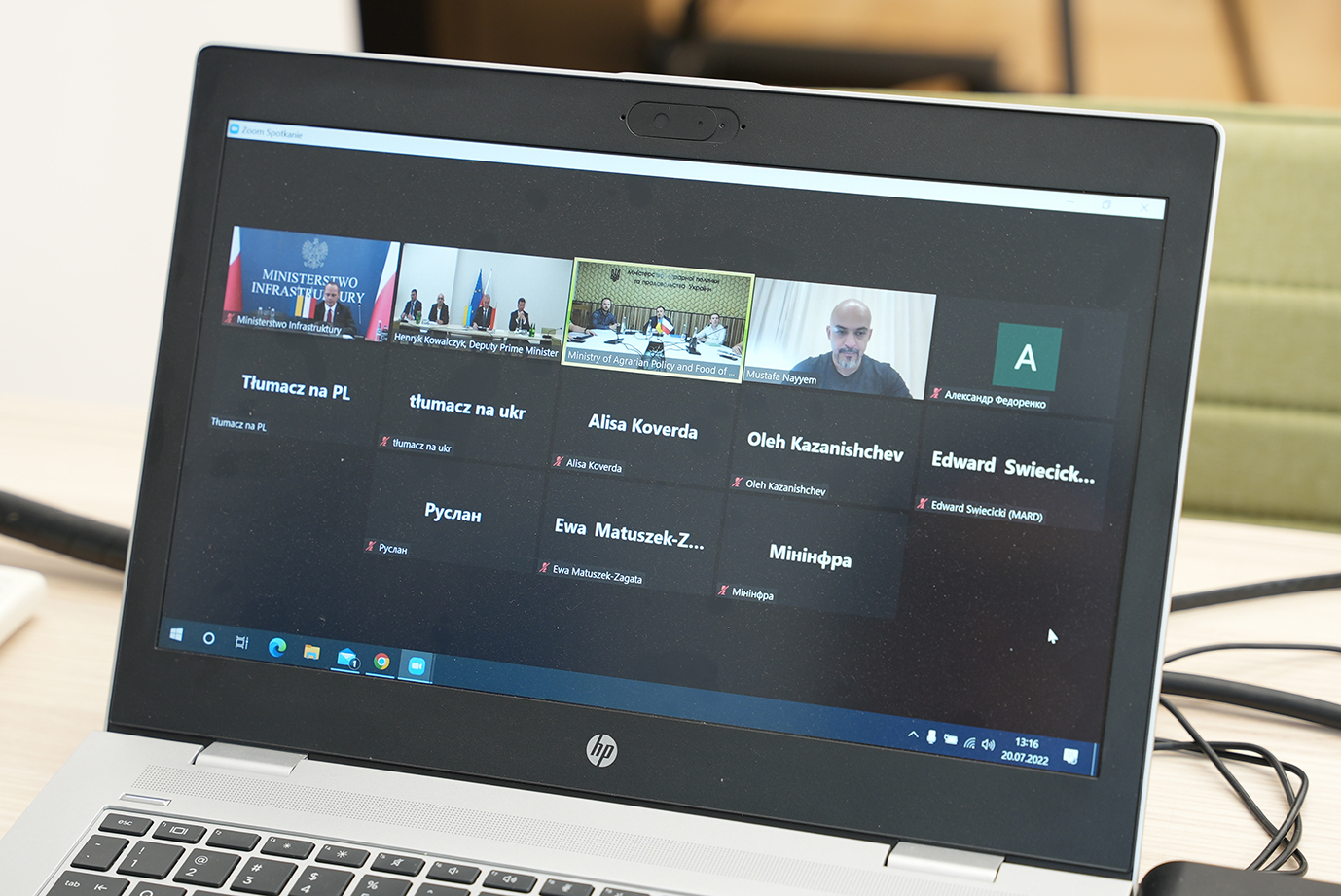 Z inicjatywy strony ukraińskiej odbyła się wideokonferencja Henryka Kowalczyka, wicepremiera, ministra rolnictwa i rozwoju wsi oraz Andrzeja Adamczyka, ministra infrastruktury RP z Mykołą Solskim, ministrem polityki rolnej i żywności Ukrainy oraz Mustafą Najemem, wiceministrem infrastruktury Ukrainy.