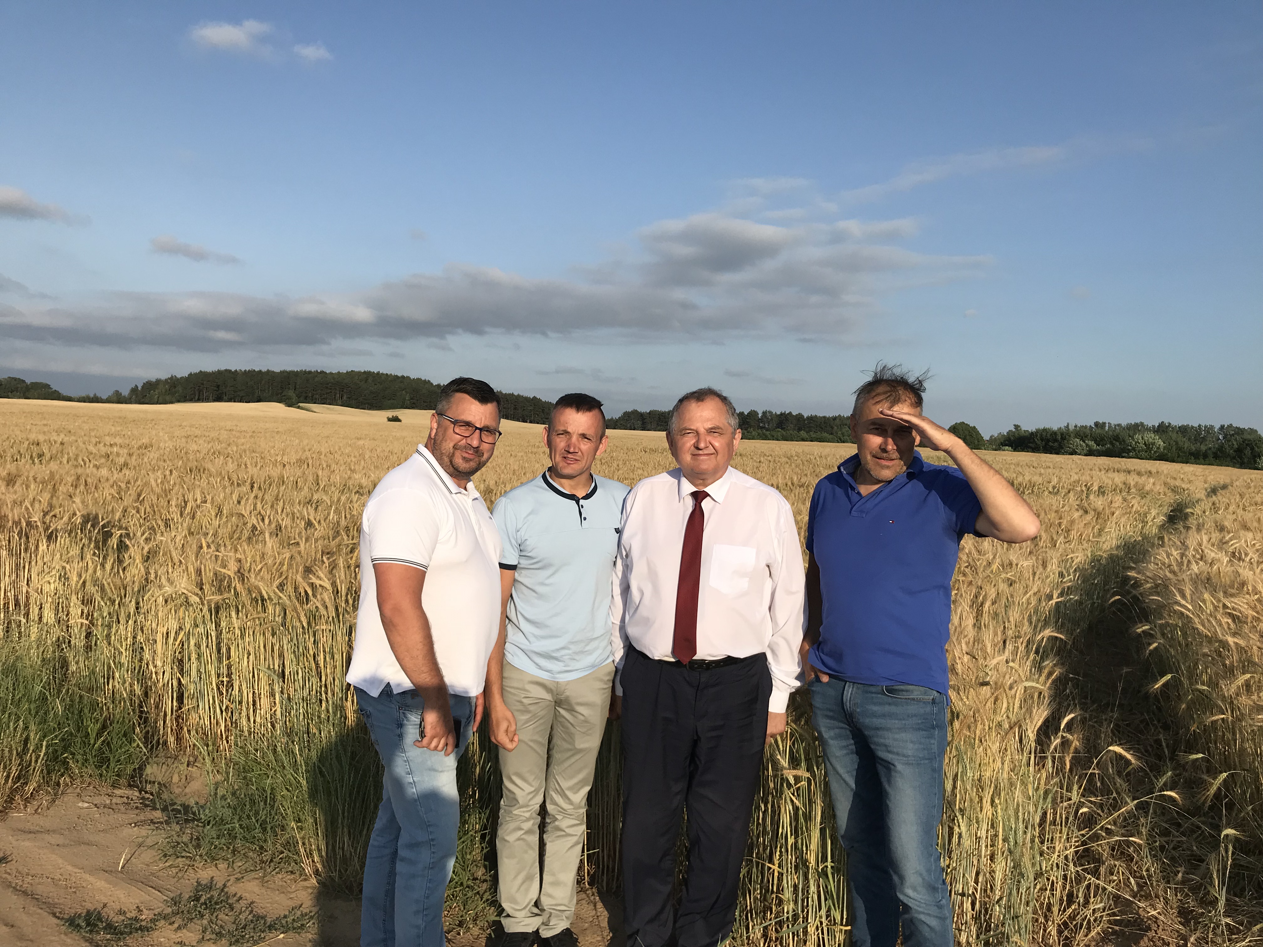 Przebieg pogody w tym sezonie wegetacyjnym budzi wśród rolników dużą obawę o jakość ziarna. Stąd, na prośbę jednego z rolników biorących udział w spotkaniu, wiceminister Ryszard Zarudzki odwiedził również okoliczne pola uprawne.