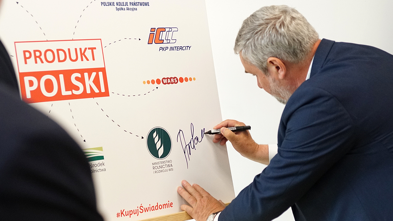 Ministerstwo Rolnictwa i Rozwoju Wsi wspólnie z Krajowym Ośrodkiem Wsparcia Rolnictwa prowadzi akcję #KupujŚwiadomie #Produktpolski promującą patriotyzm konsumencki, w trakcie której szczególny nacisk jest położony na zwiększenie rozpoznawalności znaku PRODUKT POLSKI. Zamieszczenie tego oznaczenia na produktach jest czytelnym przekazem dla konsumentów i potwierdzeniem, że produkty te zostały wyprodukowane z surowców wytworzonych w 100% na terenie Polski (w przypadku produktów nieprzetworzonych). Natomiast produkty przetworzone muszą w swoim składzie zawierać min. 75% surowców pochodzących z Polski, a maks. 25% mogą stanowić składniki importowane. Prowadzona w mediach kampania informacyjna #KupujŚwiadomie #Produktpolski, dzięki współpracy ze spółkami będącymi w zasobach Ministerstwa Aktywów Państwowych, obejmie swoim zasięgiem w szczególności podróżnych i osoby odwiedzające placówki pocztowe.