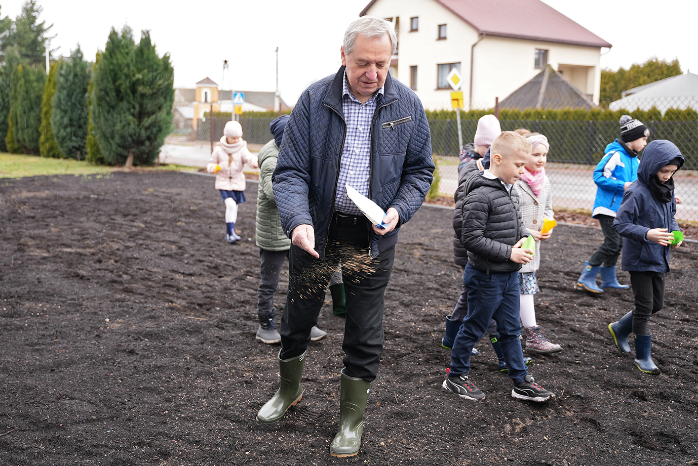 – Obserwujcie, ile tu będzie roślin, ile różnego rodzaju owadów. Niech to będzie dla was takie miejsce nauki przyrody, abyście tu, pod oknami szkoły mogli obserwować, jak ta przyroda pięknie się rozwija – zwrócił się wicepremier do uczniów podczas siania łąki w Poświętnem.
