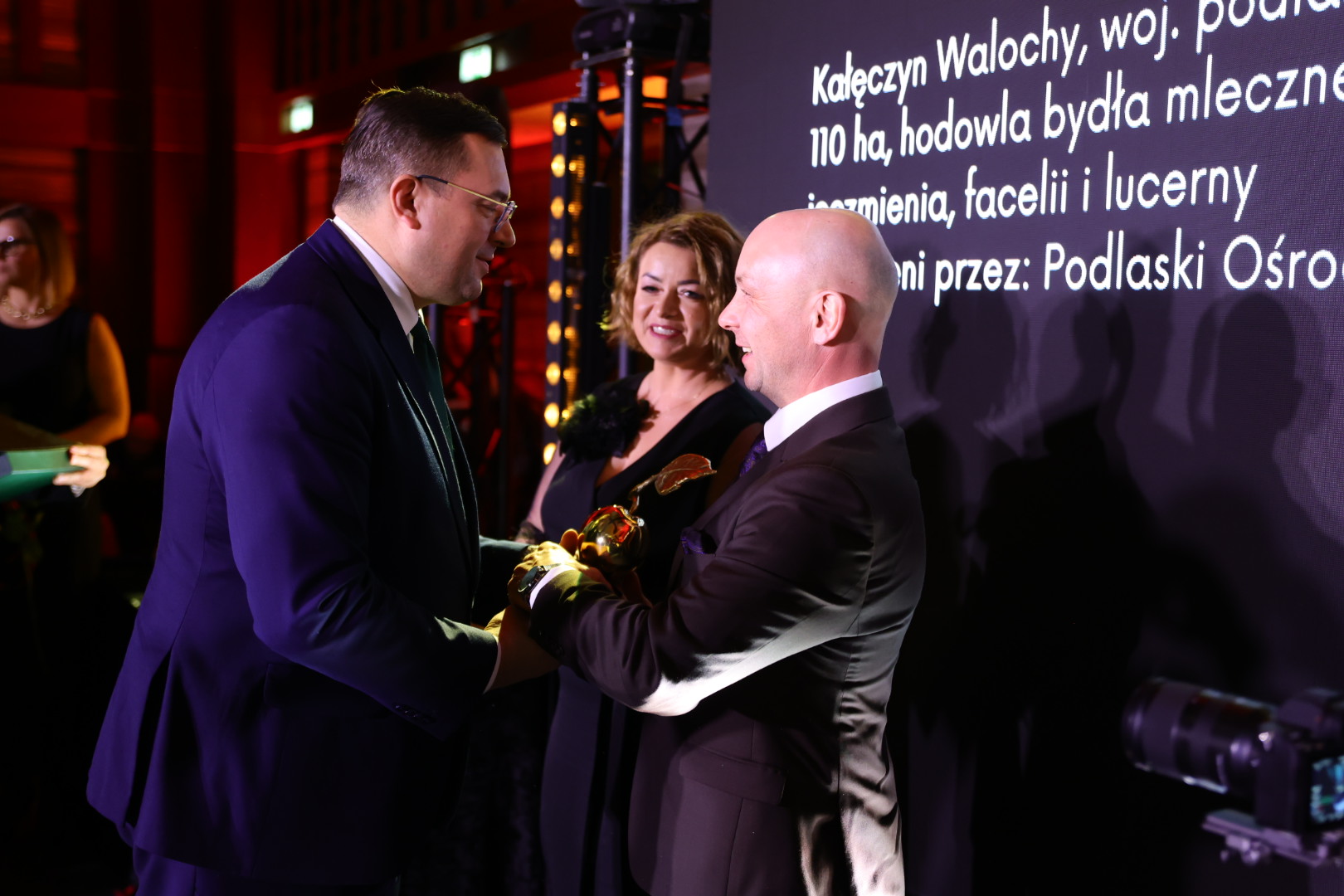 Podczas gali minister Stefan Krajewski, wraz z przedstawicielami Krajowego Ośrodka Wsparcia Rolnictwa, wręczył prestiżowe statuetki „Złotego Jabłka” oraz tytuły Rolnik–Farmer Roku 2025.