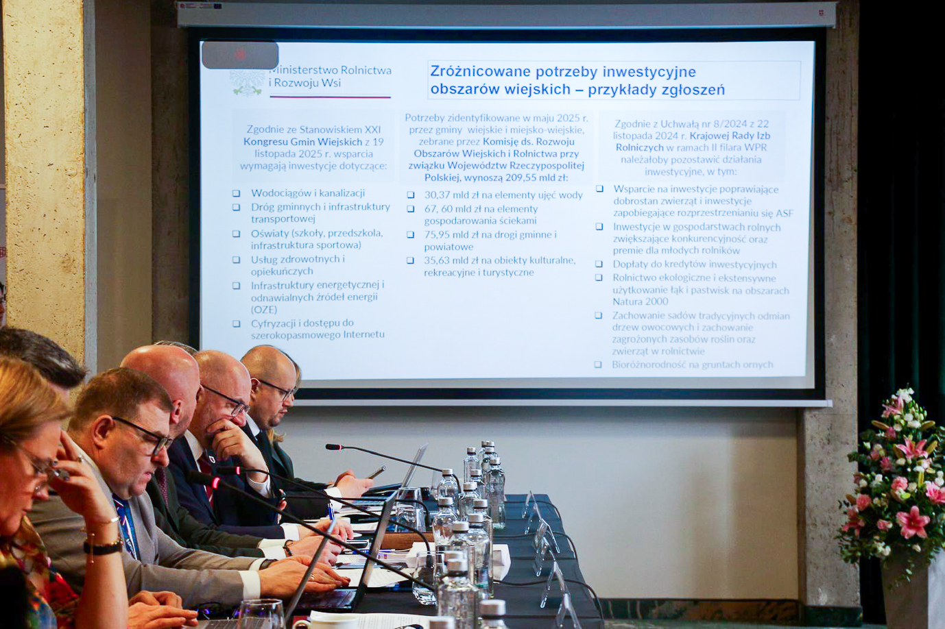 Uczestnicy dyskusji podkreślali olbrzymie potrzeby inwestycyjne samorządów w zakresie infrastruktury i zapewnienia mieszkańcom obszarów wiejskich dostępu do wysokiej jakości usług publicznych. Według szacunków przekazanych przez Komisję ds. Rozwoju Obszarów Wiejskich i Rolnictwa przy Związku Województw Rzeczypospolitej Polskiej, potrzeby te wynoszą ponad 209 mld zł, m.in. w zakresie ujęć wody, infrastruktury gospodarowania ściekami, dróg gminnych i powiatowych oraz obiektów kulturalnych, rekreacyjnych i turystycznych na obszarach wiejskich.