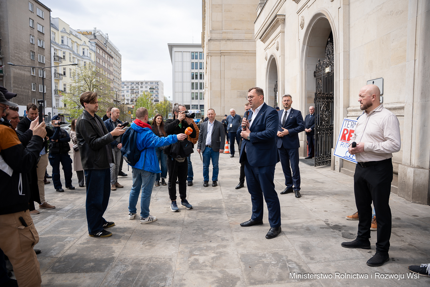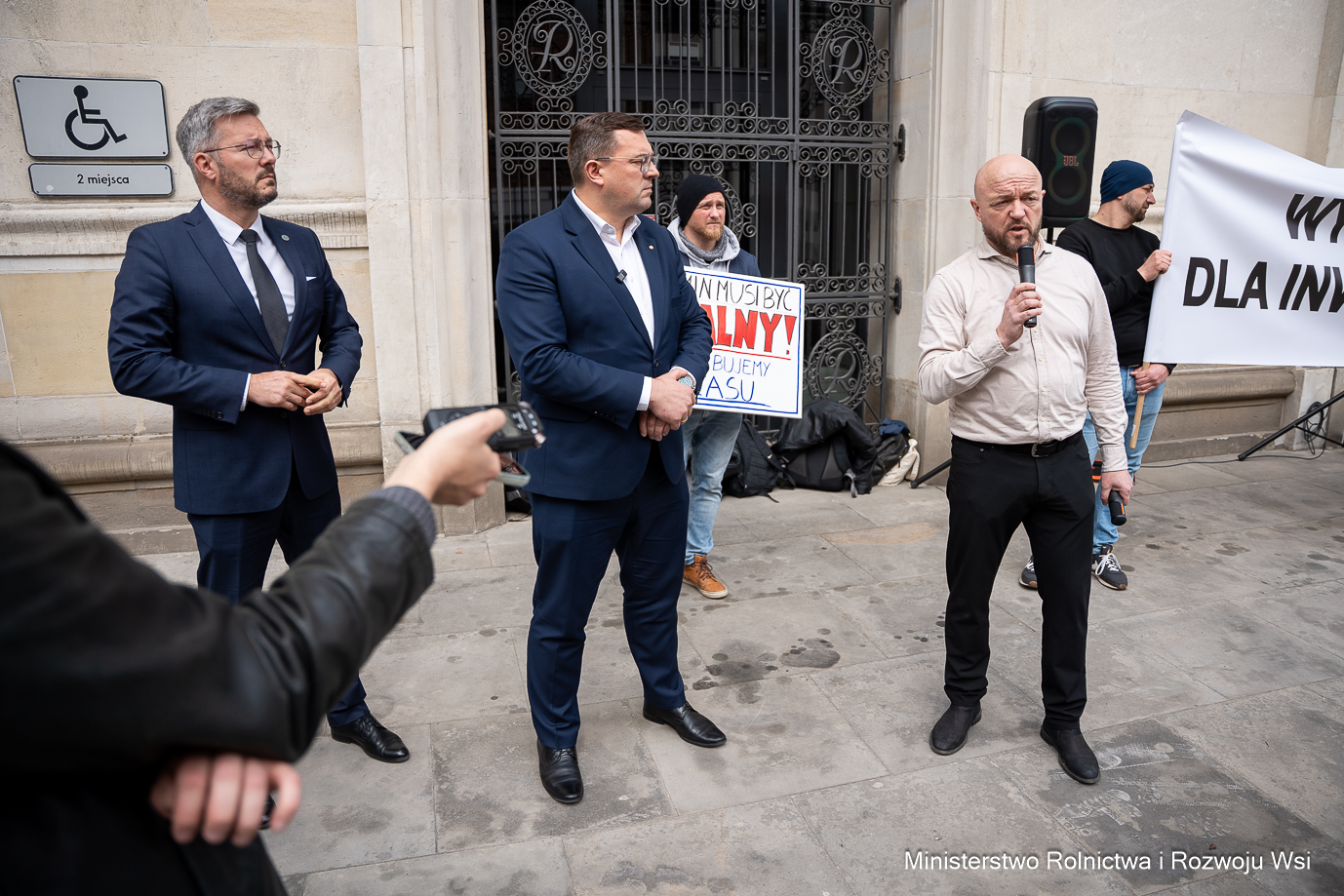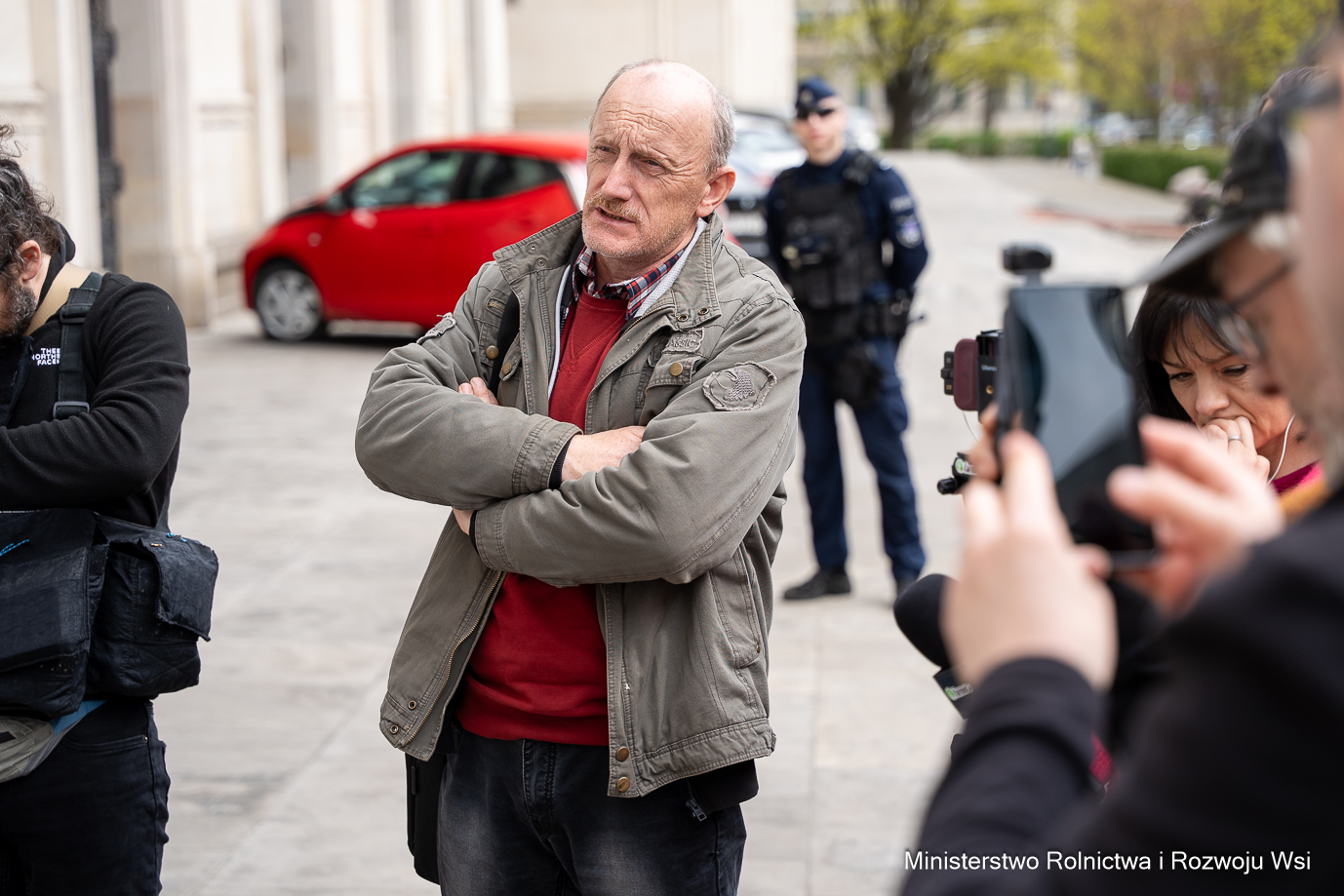 Minister Stefan Krajewski spotkał się z protestującymi przed budynkiem MRiRW mimo napiętego harmonogramu. W związku z wcześniejszymi zobowiązaniami, w dalszych rozmowach przy stole, szefa resortu rolnictwa reprezentowali Michał Zarzecki, szef Gabinetu Politycznego Ministra i Leszek Szymański, wiceprezes ARiMR.